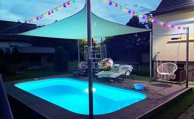 Alacsony fenntartású hőszigetelt, klimatizált családi ház, medencével, kerti tóval, dupla TELEKKEL! ! !