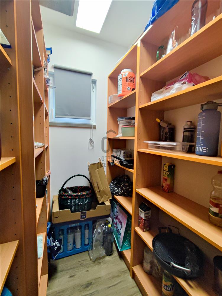 A ház U alakban került kialakításra, a kellemes családi időtöltést az amerikai konyhás nappali biztosítja, amely a ház központját jelenti. a ház 2 végében található 2 teljes értékű hálószoba, továbbá 2 félszoba, amelyből egy igény esetén teljes gardróbbá alakítható( ezekhez a beépített bútor rendelkezésre áll). 2 Fürdőszoba van az ingatlanban, az egyik zuhanyzóval, a másik káddal van felszerelve. Rengeteg tárolási lehetőséget biztosít a ház, 1 kamra, 1 mosókonyha és plusz egy szoba ( ez igény esetén wc + mosdóvá alakítható), illetve rengeteg beépített bútor.