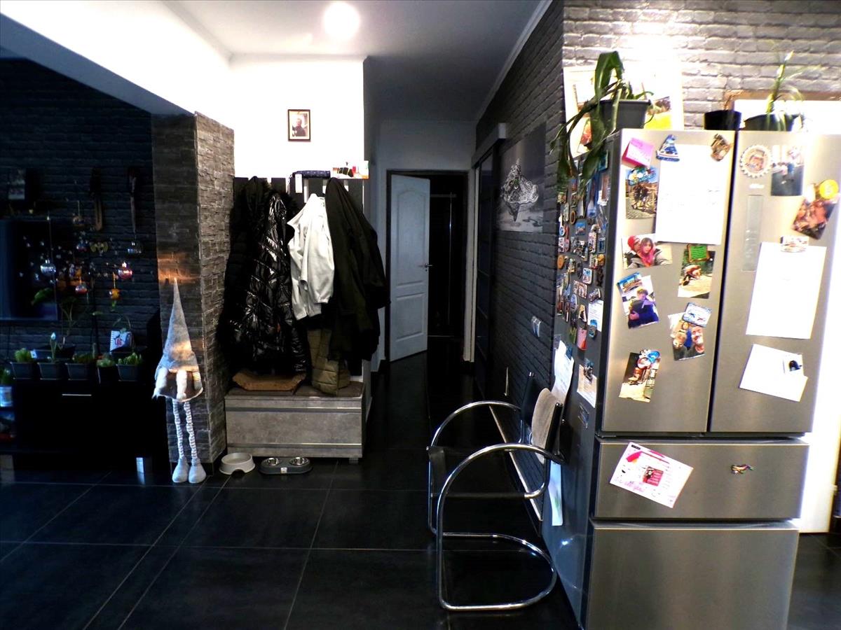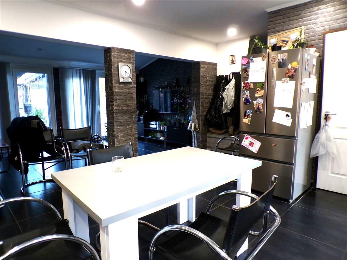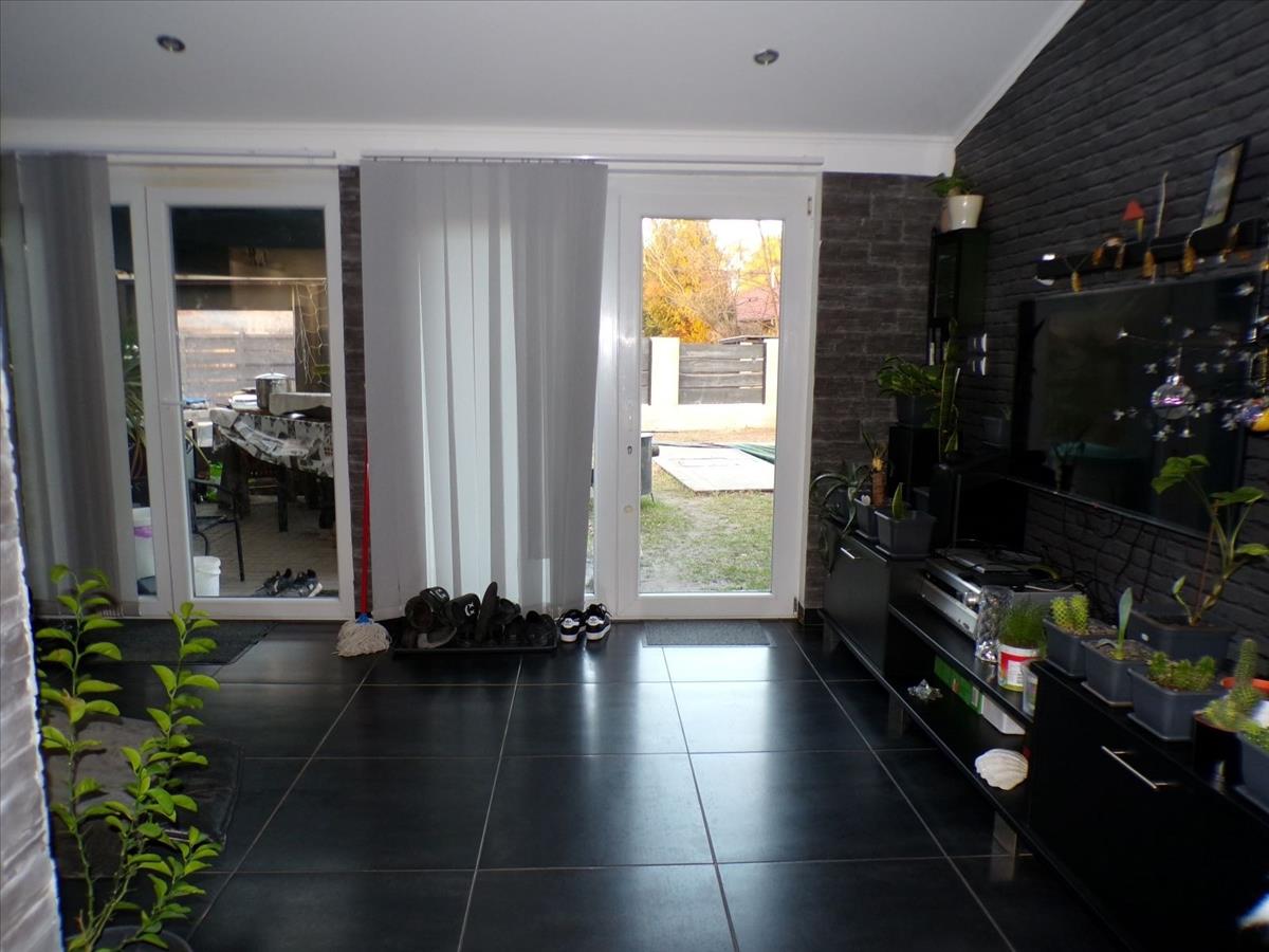 2 kisebb, 1 nagyobb szoba, nagy nappali, étkező, beépített konyha, spejz, fürdőszoba (káddal és zuhanyzóval), különálló wc, háztartási helyiség, terasz, garázs.