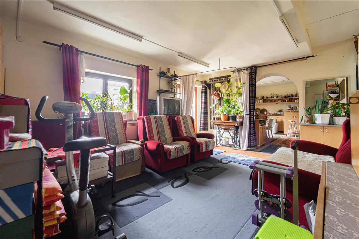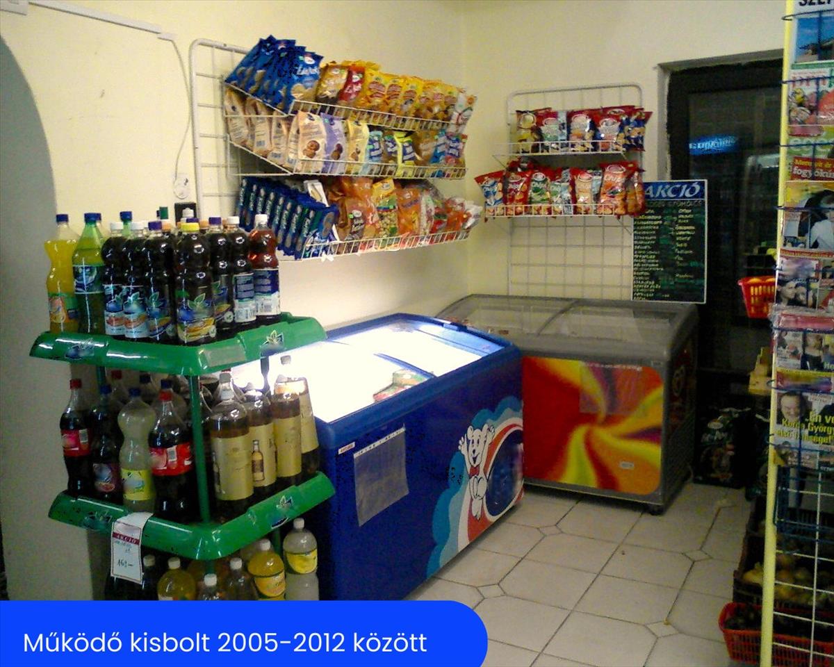 A földszinten korábban üzlethelyiség működött, amely nem kereslethiány miatt szűnt meg, hanem családi okból.