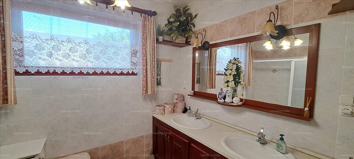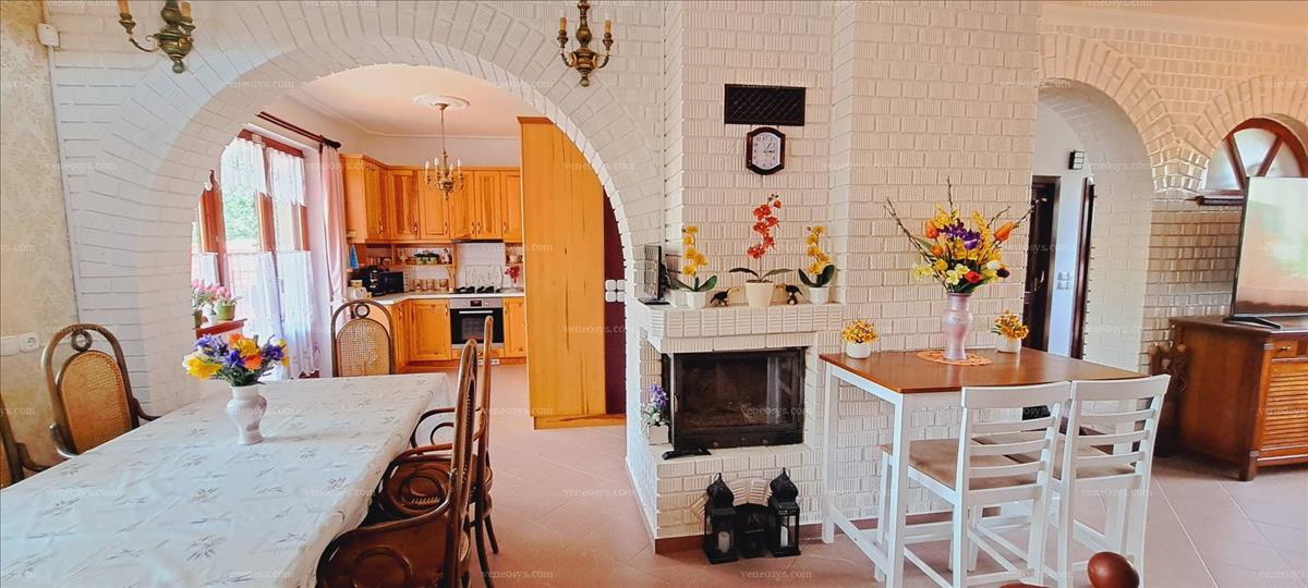 Nyílászárók: fa szerkezezű ablakok hőszigetelt üveggel, szúnyoghálókkal és redőnyökkel. a földszinten padlófűtés, az emeleten radiátor hőleadók vannak, melyet jelenleg új gázkazán működtet. a szuterén nagysága miatt még kiépíthető a meglévő mellé egyéb fűtőkazán is. 5 Db új hűtő-fűtő klíma van, mely -30 fokban is használható, továbbá elektromos fűtőpanelek is rendelkezésre állnak. a nappaliban kandalló is biztosíthatja a meleget, mely a nyitott térnek köszönhetően az emeletet is kifűti. Ugyanezt biztosítja a lenti padlófűtés is, nyitott ajtóknál nincs szükség az emelet külön fűtésére. a melegvíz ellátás elektromos bojlerrel megoldott. a fedett provance jellegű terasz: 25 m2, ahol egyedi elképzelés alapján kerti konyha került kialakításra: sütési és főzési lehetőséggel. a kertben grillező és 7x3x1, 5 méteres fedett medence.