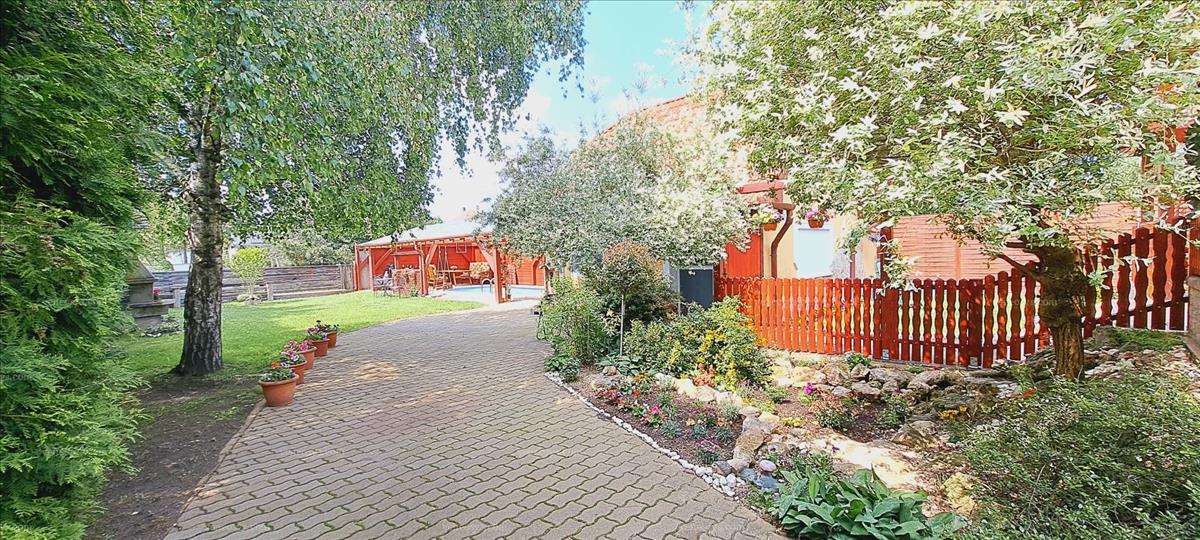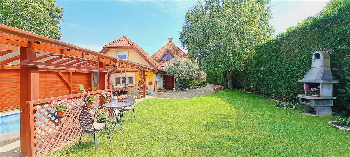 A 767 m2-es telken 1 nagyobb és egy kisebb családi ház, fedett terasz, fedett nagy medence, kerti konyha, szuterén/garázs található. a ház nagyon jól megépített, tégla falazatú, vastagon szigetelt. 3 Külön bejárat, valamint 1 nagykapu (elektromos kiállással) biztosítja a telekre való bejutást.