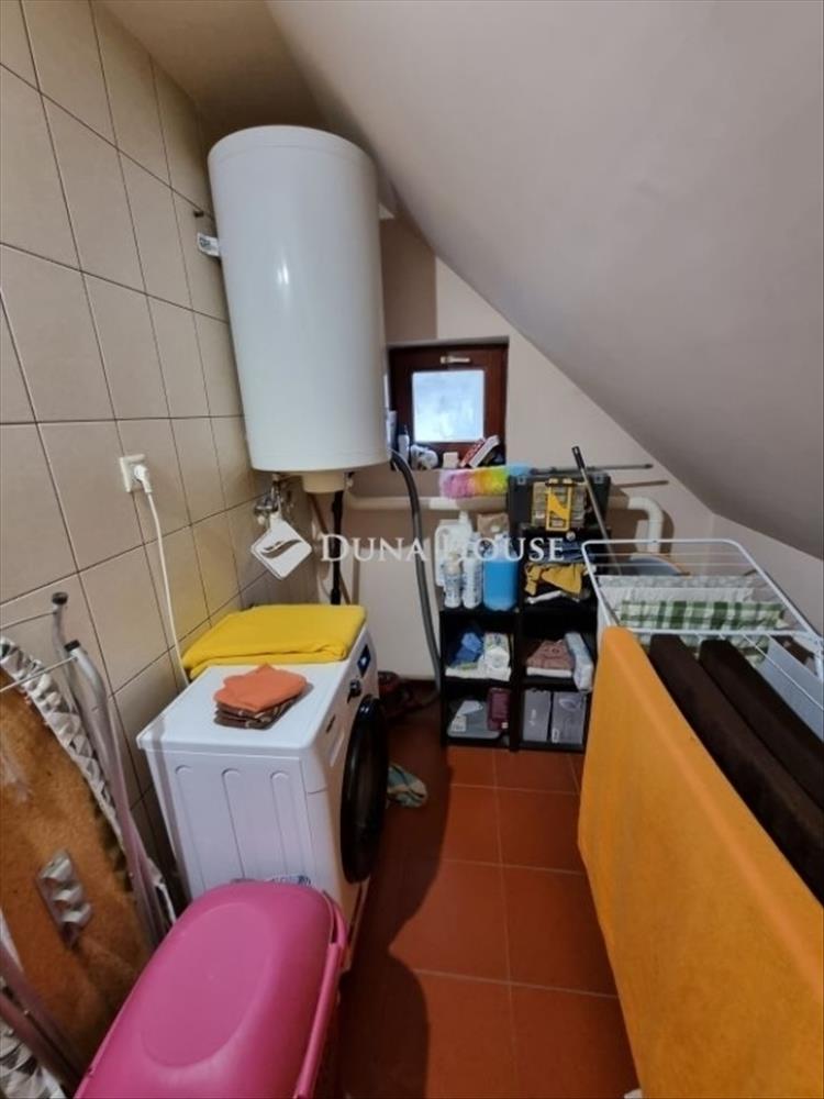 Az emeleten bruttó 110 m2-en nappali + 2 szoba, melyből a nagyobb ketté osztható, fürdő + wc, külön wc, gardrób, előtér, közlekedő elosztású valamint tartozik hozzá egy részben fedett 26, 87 m2-es terasz.