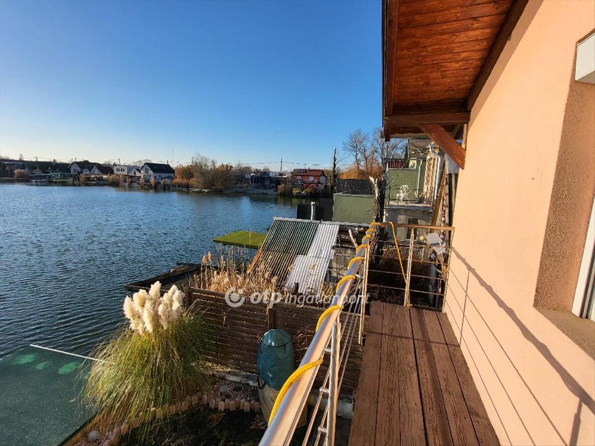 3 Telek összevonása után a 281 m2e-s vízparti területen elhelyezkedő 110 m2 nettó alapterületű (alsó szintje tégla, felső szintje könnyűszerkezetes), szigetelt ingatlan minden kényelmet biztosít, állandó lakhatásra és nyaralásra egyaránt. Elhelyezkedése alapján az M0-ás körgyűrűről gyorsan megközelíthető gépkocsival.