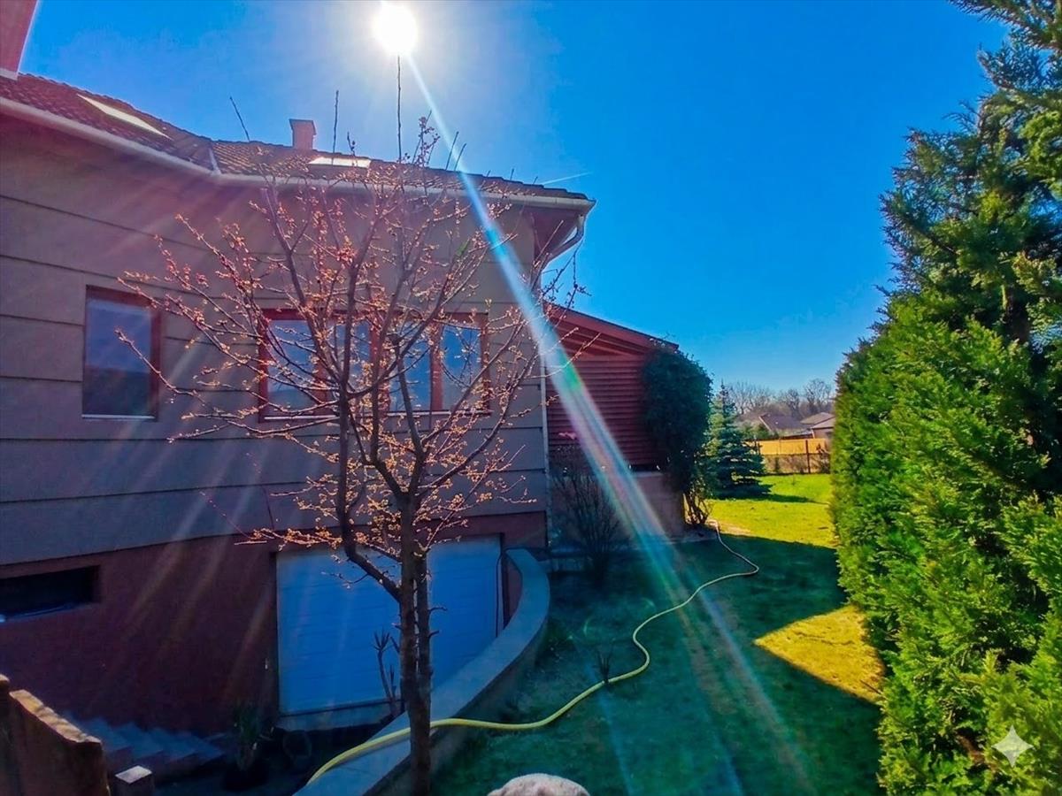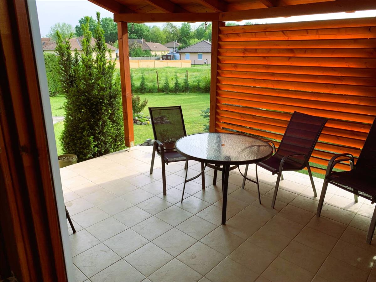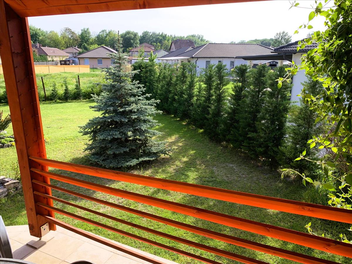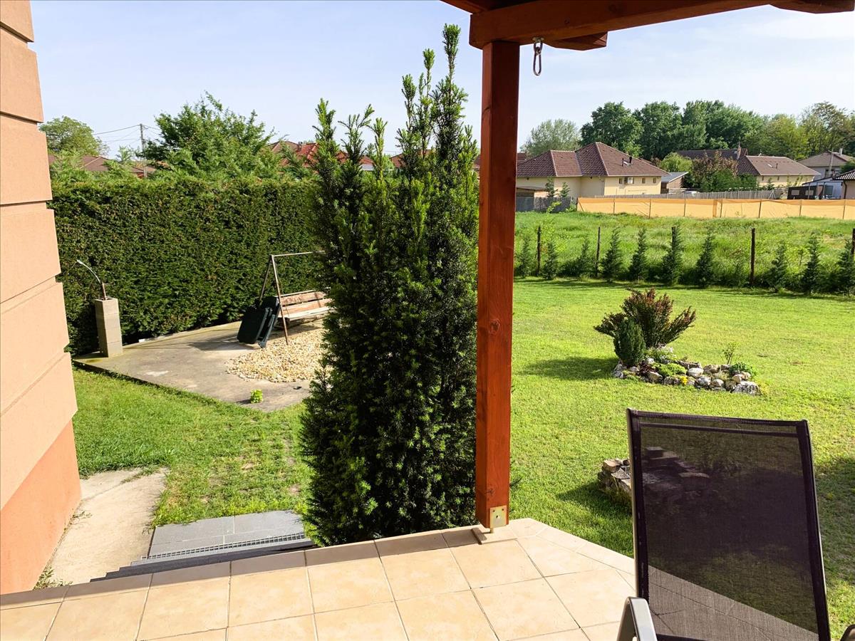 A házat szépen parkosított, körbejárható kert öleli körül, amely bőséges zöldfelületével kellemes környezetet teremt a mindennapokhoz. a fedett terasz ideális helyszín családi reggelikhez, baráti beszélgetésekhez vagy a nyugodt esti kikapcsolódáshoz.