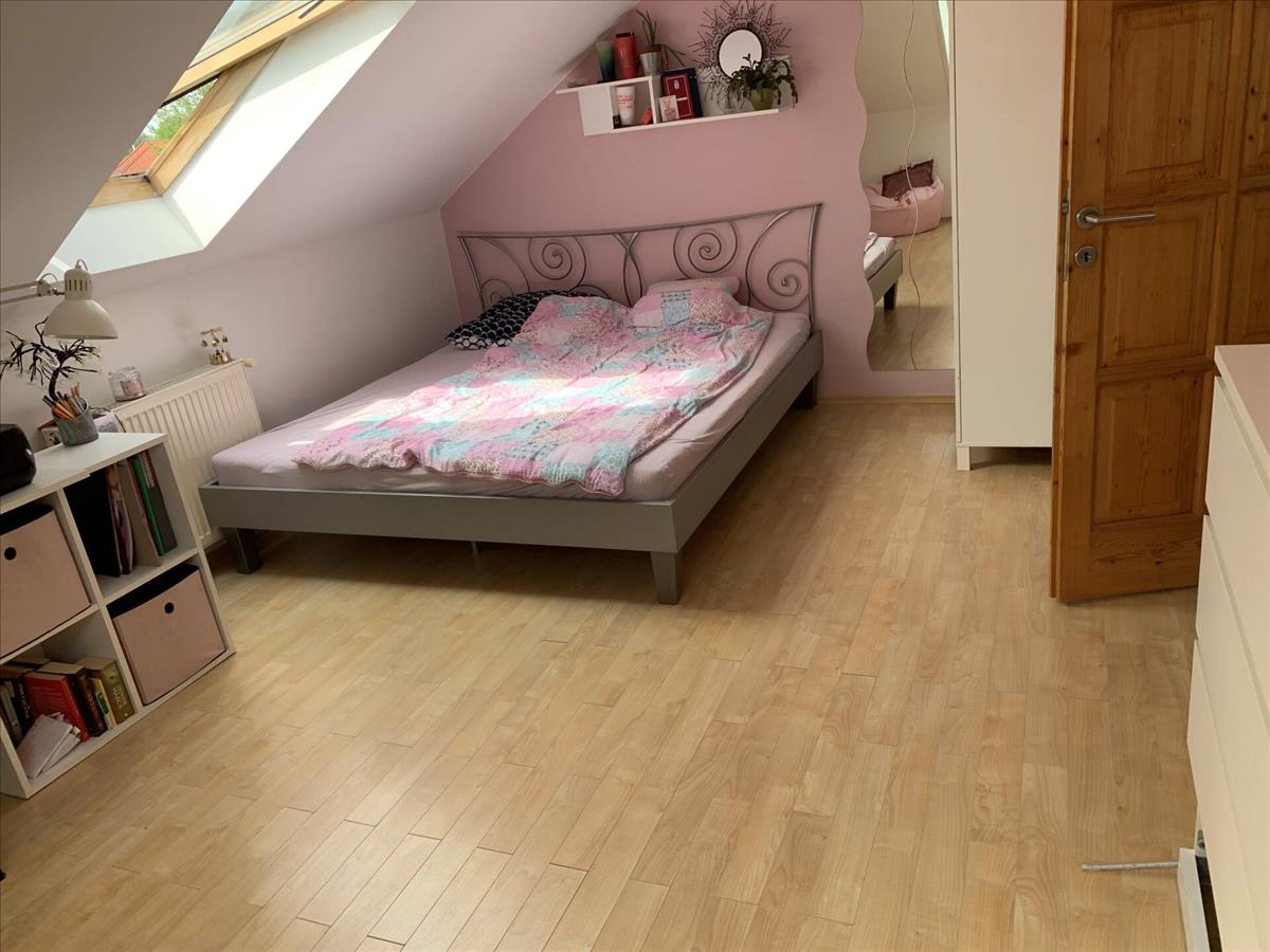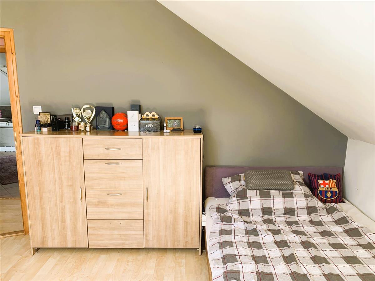 Az emeleti, 75 m²-es lakószinten három kényelmes méretű hálószoba található, amelyek a család nyugodt pihenését szolgálják. a szint különlegessége a tágas, egyedi kialakítású fürdőszoba, amely méretéből és elrendezéséből adódóan a mindennapokban is kiemelkedő komfortot biztosít.