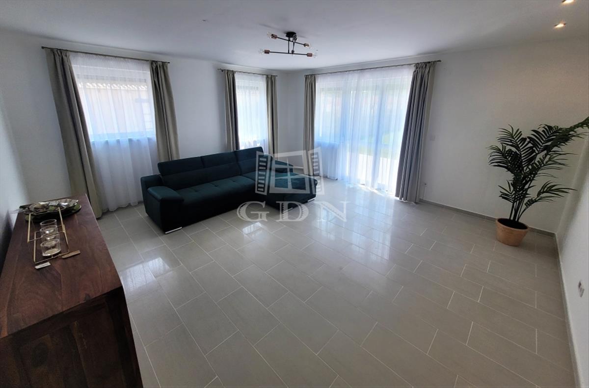 - belső elosztás: nappali, konyha (vadonatúj háztartási gépekkel felszerelt), fürdőszoba, wc, háztartási helyiség, 3 hálószoba, közvetlen kertkapcsolatos nagy terasz,