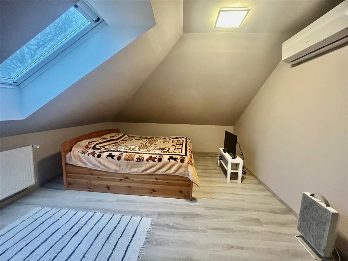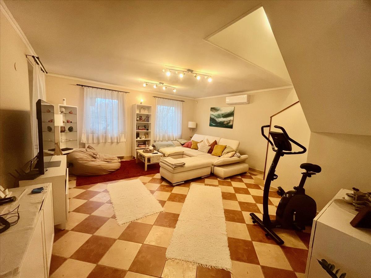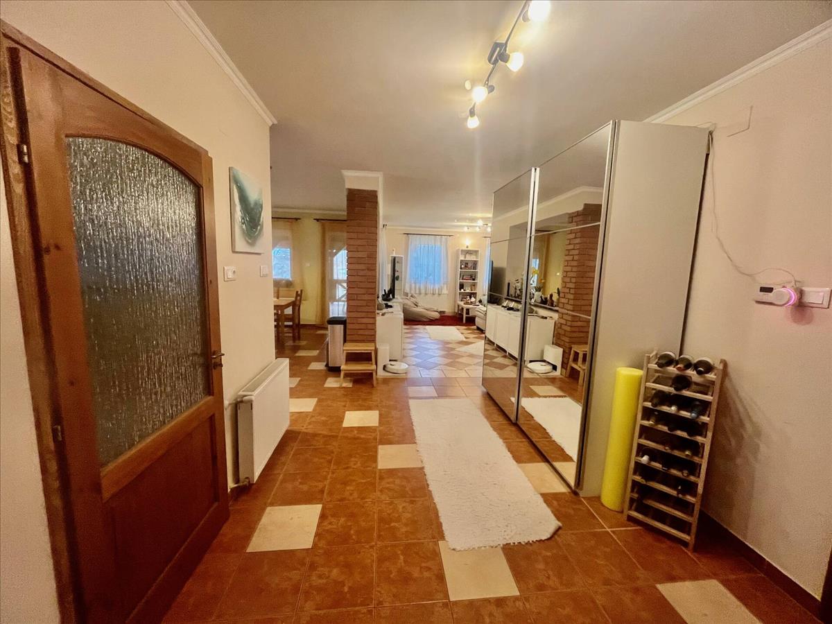 Ez a téglaépítésű, 2004-ben épült családi ház ideális választás egy nagyobb családnak. a földszinten tágas nappali, külön konyha-étkező teraszkapcsolattal, dolgozószoba, kádas fürdőszoba, előszoba és egy fűtött garázs található. Az emeleten három hálószoba, három gardrób, valamint egy befejezésre váró fürdőszoba kapott helyet. a tetőtérben és az emeleten több helyen is praktikus tárolók lettek kialakítva.