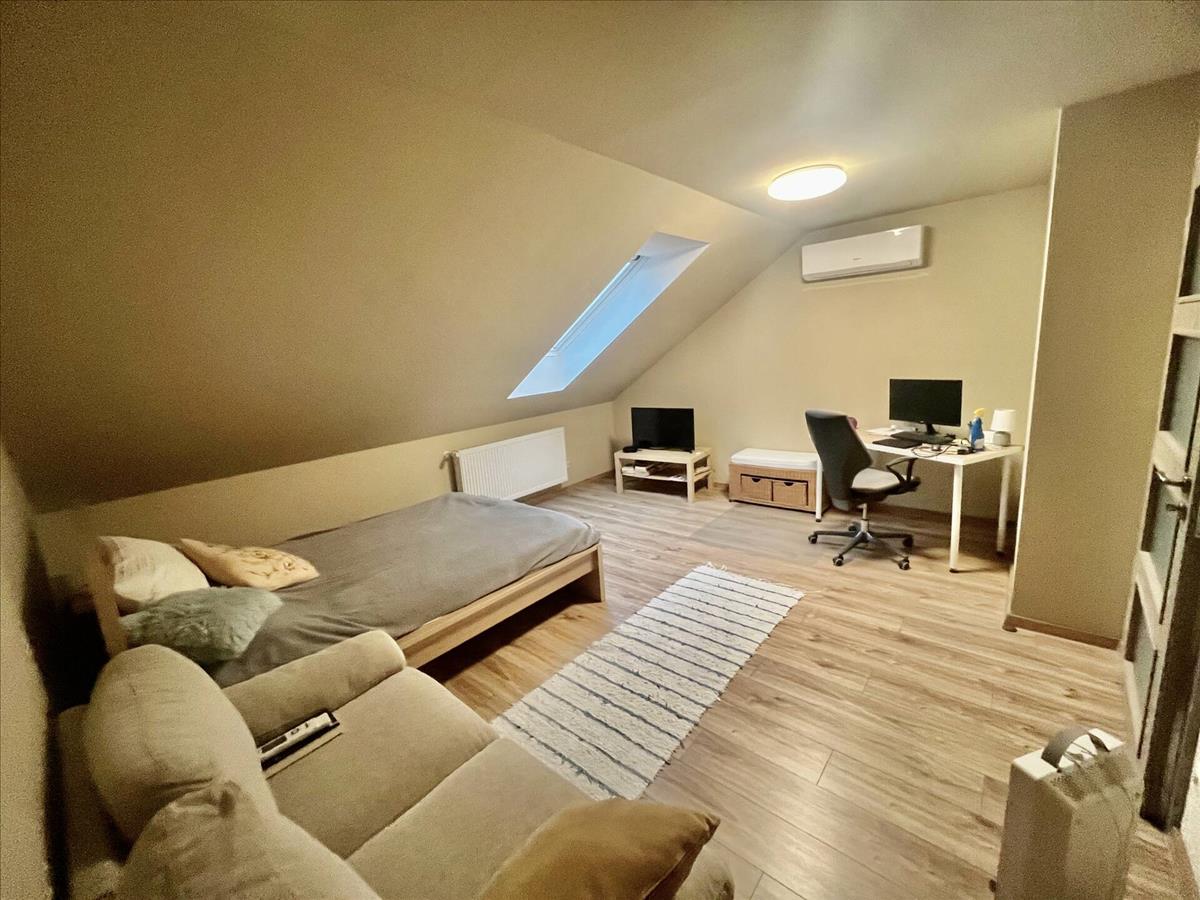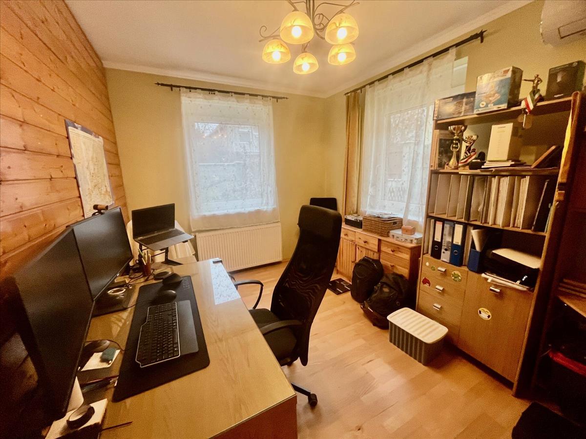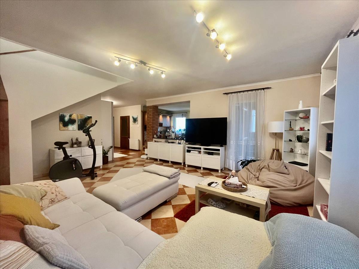 Ez a téglaépítésű, 2004-ben épült családi ház ideális választás egy nagyobb családnak. a földszinten tágas nappali, külön konyha-étkező teraszkapcsolattal, dolgozószoba, kádas fürdőszoba, előszoba és egy fűtött garázs található. Az emeleten három hálószoba, három gardrób, valamint egy befejezésre váró fürdőszoba kapott helyet. a tetőtérben és az emeleten több helyen is praktikus tárolók lettek kialakítva.