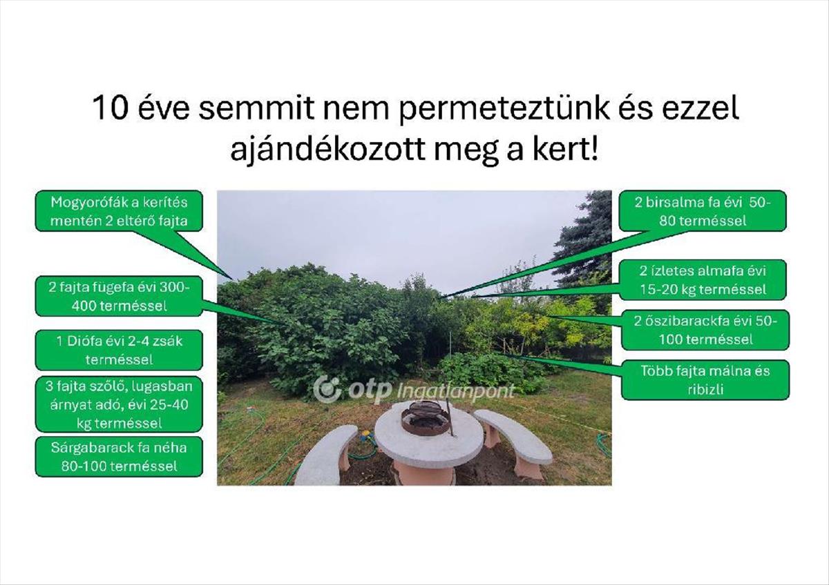 A kert igazi különlegesség: 2015 óta tudatos gondozott bio kert, rengeteg termő növénnyel, -eper, -szeder, -dió, -füge, -szilva, valamint egy szőlőlugas, ami kellemes árnyékot ad. a locsoláshoz fúrt kút is rendelkezésre áll.