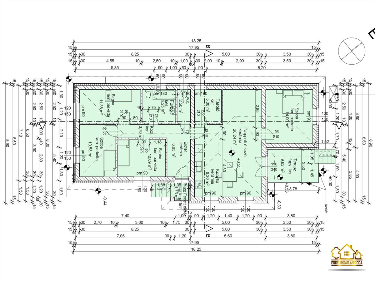 Az ingatlan 30-as téglából, 15 cm-es külső hőszigeteléssel, 20 cm-es födémszigeteléssel, 3 rétegű műanyag nyílászárókkal, betoncserép fedéssel épül.