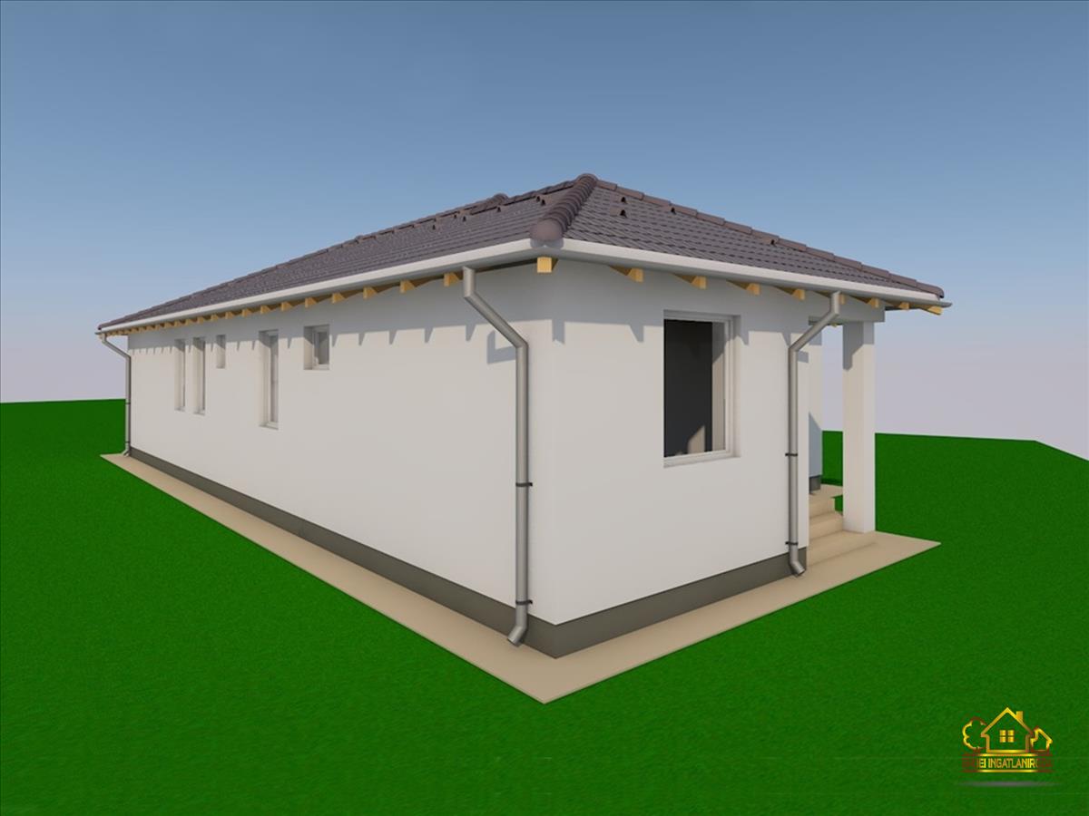 Az ingatlanban egy előszoba, egy amerikai konyhás nappali, 4 hálószoba, egy fürdőszoba, egy külön wc és egy kamra került kialakításra. a nappalihoz egy 7 m²-es fedett terasz kapcsolódik.