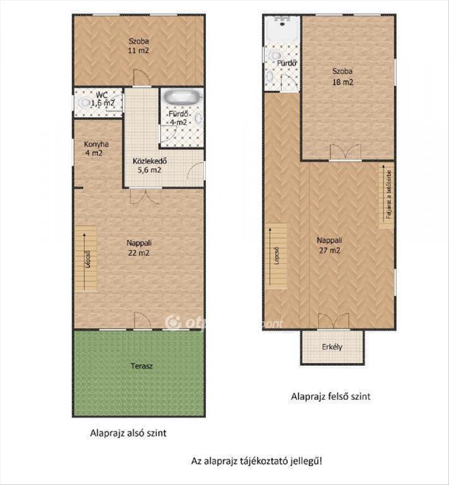 Mind a két szinten kialakításra került nappali, hálószoba és vizesblokk, továbbá a tetőtérben is kialakításra került egy tágas szoba. Az alsó szint nappalijából tágas terasz nyílik, ahonnan csodás kilátásban gyönyörködhetünk.