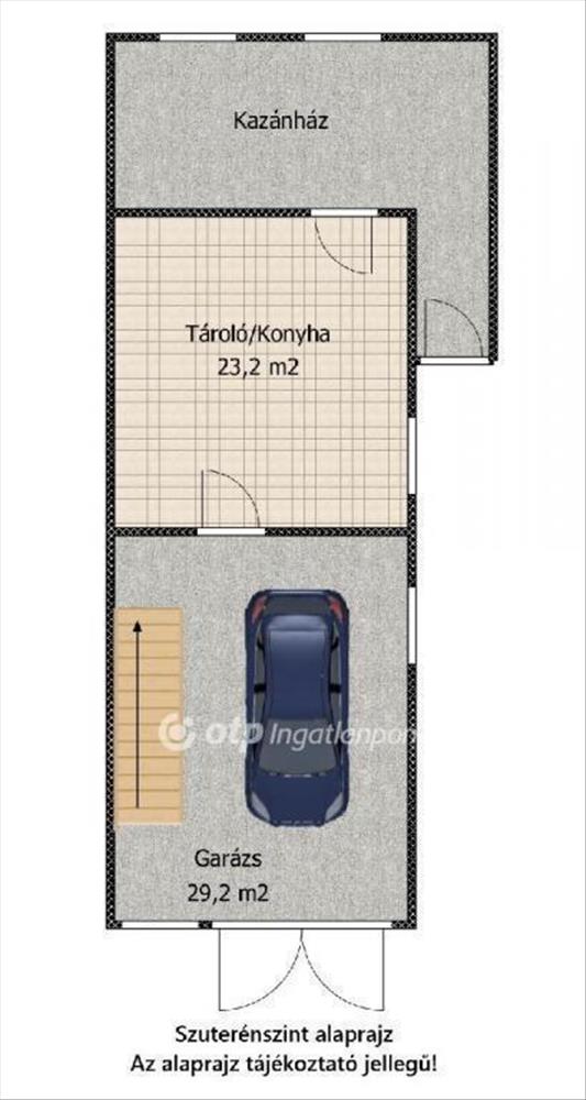 A szuterénrészben található tágas garázs, továbbá tárolásra alkalmas helységek. Itt kényelmes méretű konyha is ki lett építve.