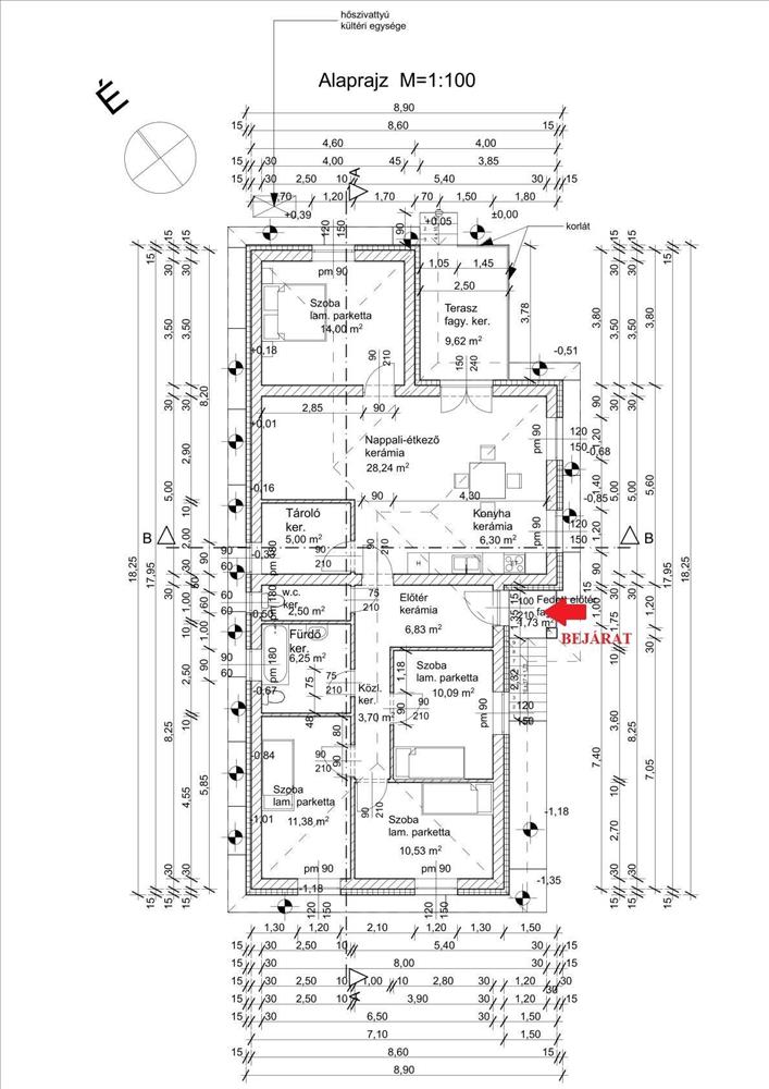 - Elrendezése: Előtér, közlekedő, amerikai konyhás nappali + 4 szoba, fürdőszoba, külön wc, tároló