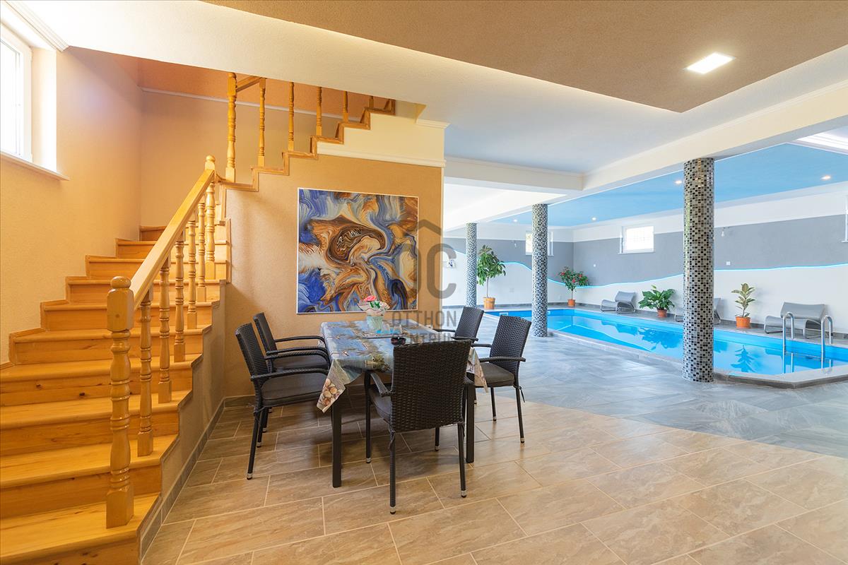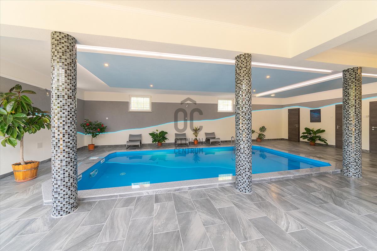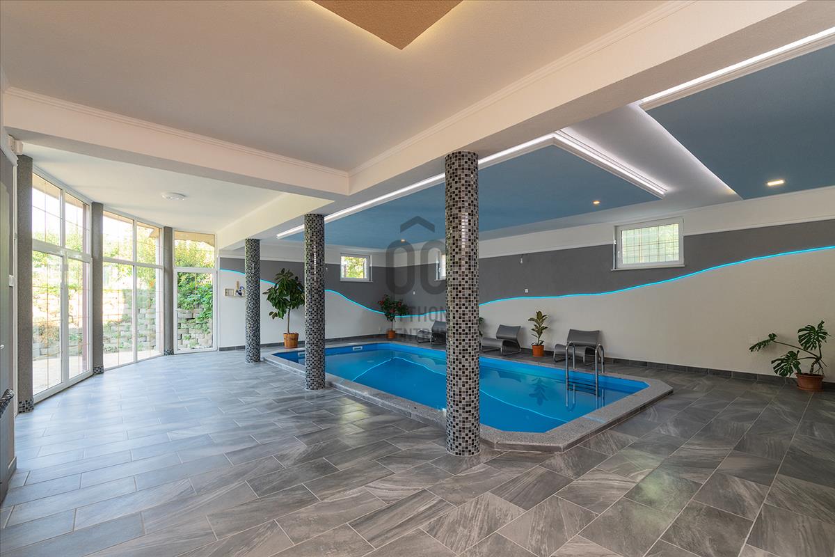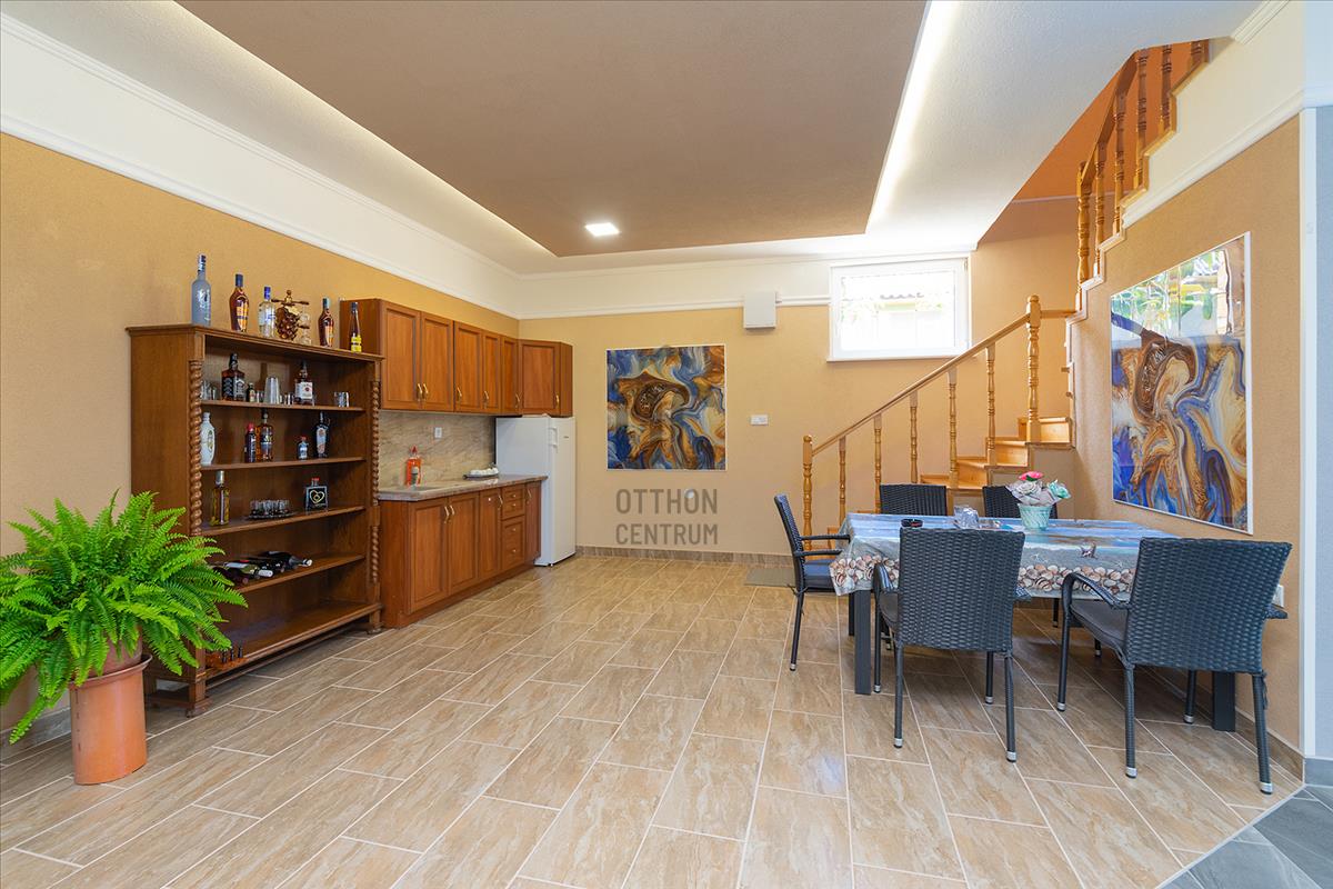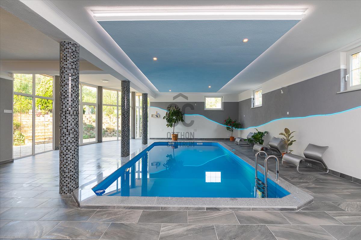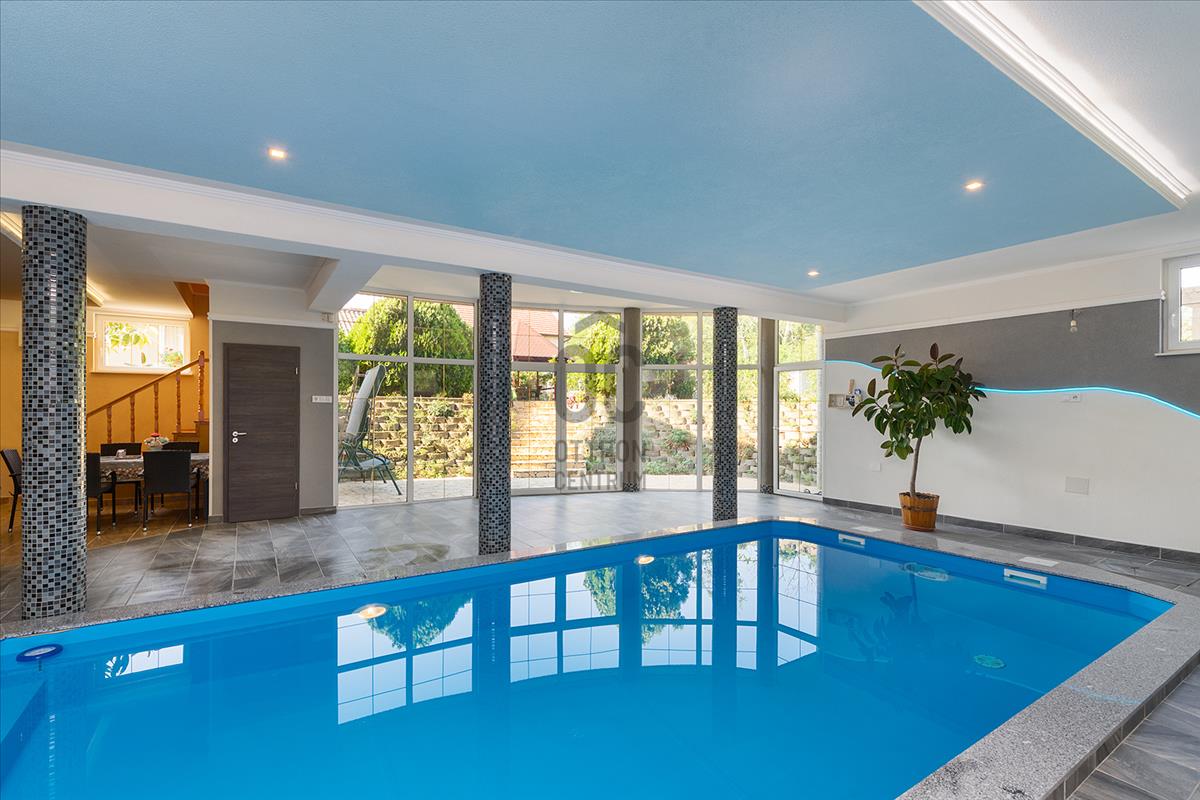 - szuterén részen kiépített fűtött medence, szauna, mosókonyha, fürdőszoba, gépészeti helység;