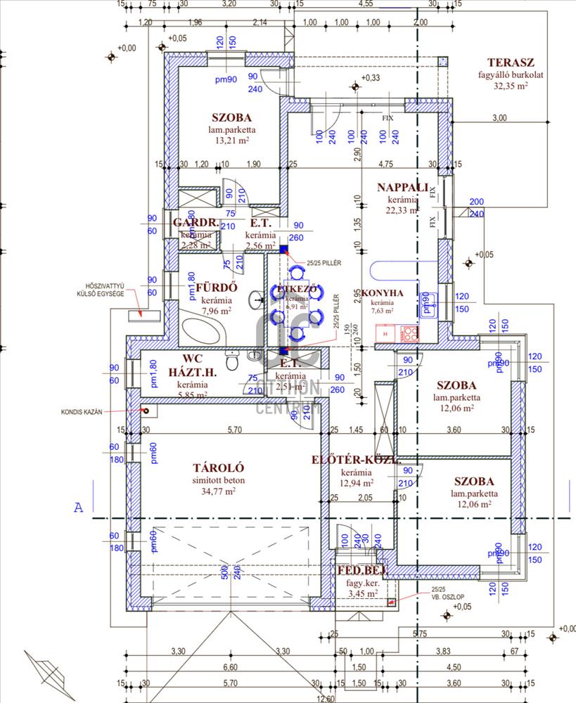 - Falak: 30 cm-es porotherm tégla + 15 cm hőszigetelés