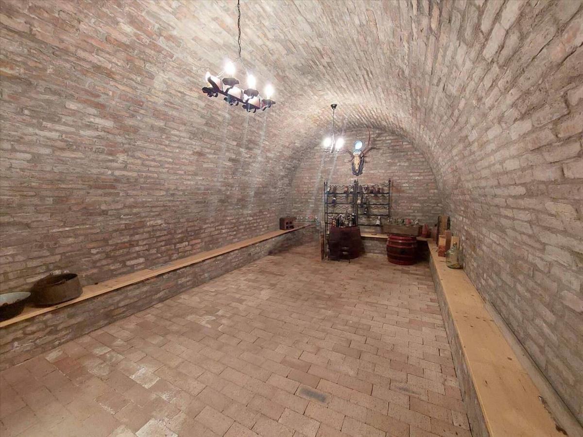 Az alsó szint (nettó 100 m²) elsősorban kiszolgáló és funkcionális tereket kínál. Itt kapott helyet egy hatalmas méretű garázs, amely kényelmes parkolást és tárolást tesz lehetővé, továbbá mosókonyha, külön wc, két tárolóhelyiség, borospince, valamint egy szauna kialakítására előkészített helyiség. Ez a szint ideális lehet hobbitérnek, vállalkozási célra, vagy akár wellness funkciók kialakítására is.