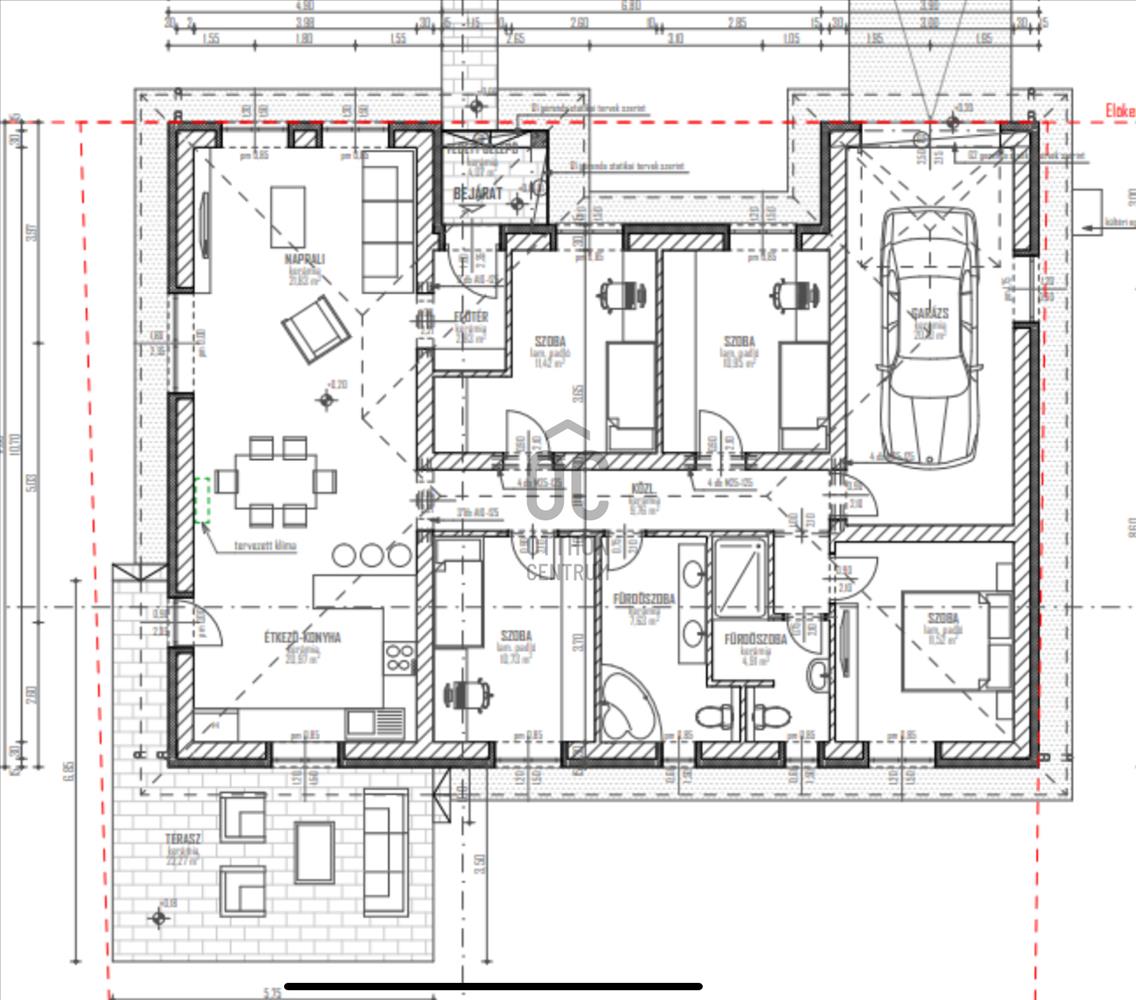 - nappali + 4 hálószoba