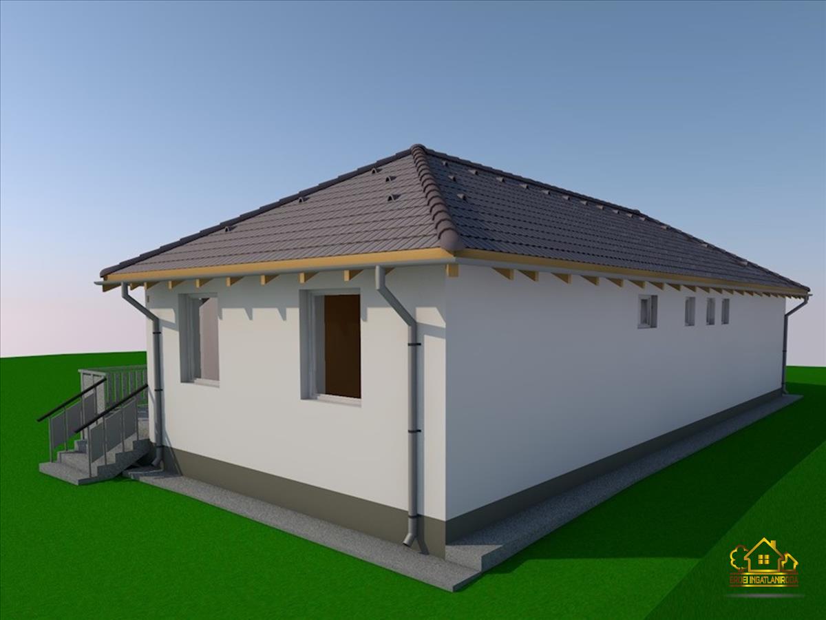 Az ingatlanban egy amerikai konyhás nappali, 4 hálószoba, egy fürdőszoba, egy külön wc, egy tároló, egy kamra, egy előszoba és egy közlekedő került kialakításra. a nappalihoz egy 12 m²-es terasz kapcsolódik. a saját elkerített telek nagysága 830 m².