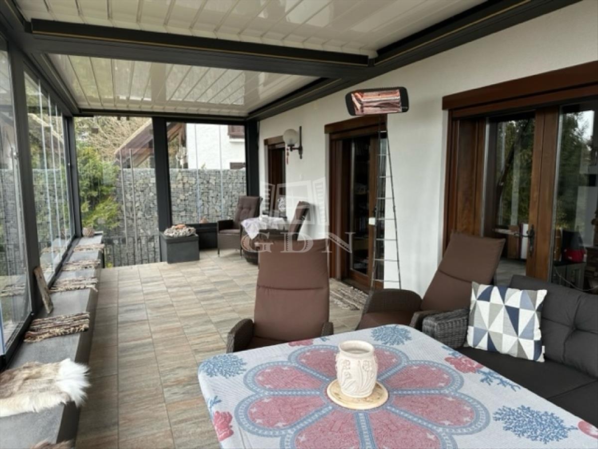 jakuzzi (feláras) riasztó, parkosított kert, automata öntöző rendszer, a házban meg cserépkályha.