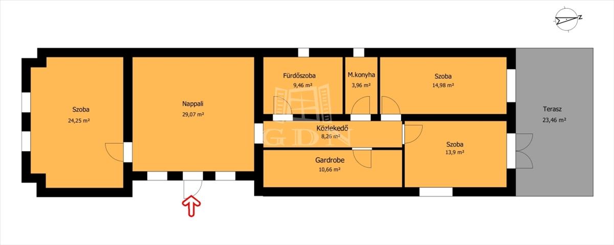 A ház 3 szobás, amerikai konyhás, nagy nappalival, nagy fürdőszobával és mosókonyhával valamint egy praktikus gardróbszobával is rendelkezik.