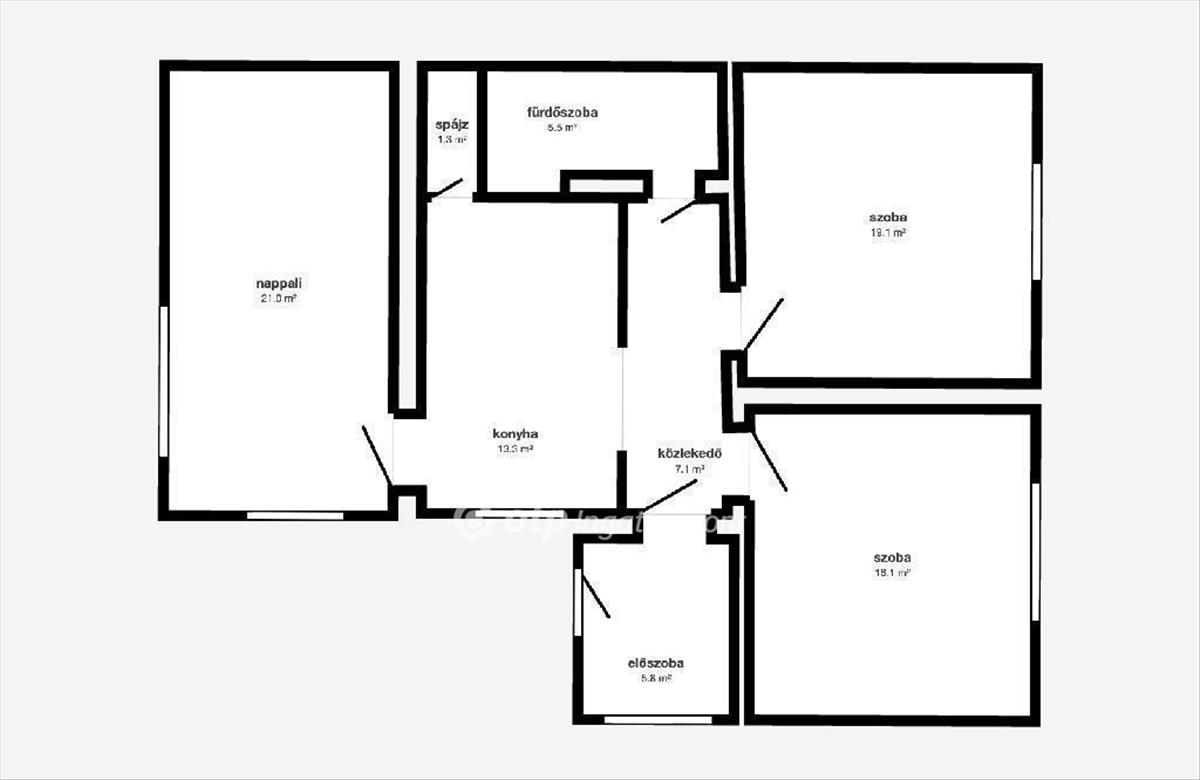 A ház elrendezése praktikus és tágas: nappali + étkező, konyha, két hálószoba, fürdőszoba és wc egyben, előszoba. a szobákban laminált padló, a többi helyiségben járólap található.