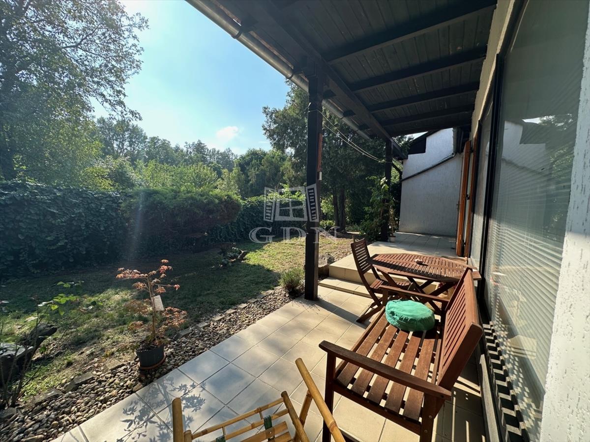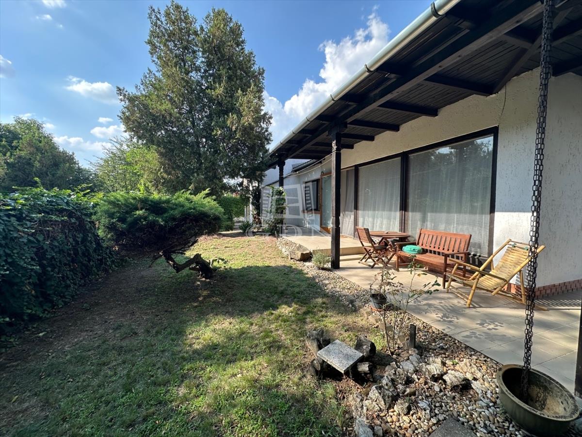 A ház kertkapcsolata egy 21 m2-es fedett teraszról nyílik.