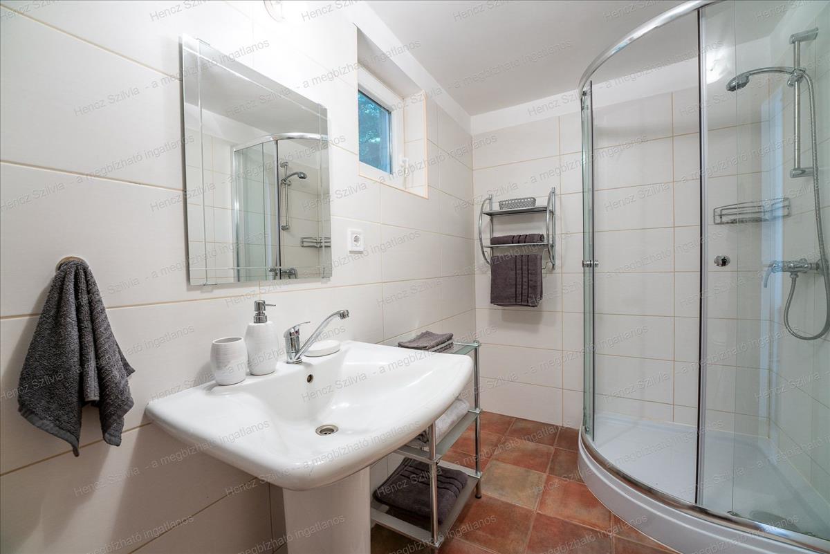 - Főépület: Tágas nappali, 2 hálószoba, stílusos konyha, éléskamra, fürdőszoba és külön wc. Természetes alapanyagok és prémium burkolatok jellemzik minden helyiségét.