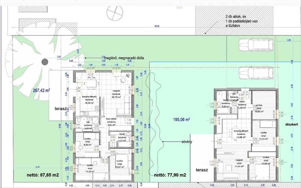 Szolnok egyik kedvelt utcájában, megvásárolható egy újépítésű, kulcsrakész, energiatakarékos, 78 nméteres családi ház, mely 195 nméteres telken, legmodernebb őko technológiákkal épült, így biztosítva az alacsony rezsiköltséget. A fűtést padlófűtés és hűtő-fűtő klíma biztosítja. Az energiaellátást napelem rendszer segíti valamint a H tarifa rendszer, egy Magyarországon elérhető, kedvezményes árú villamosenergia-tarifa. a házon 15 cm-es korszerű hőszigetelés található, és három rétegű nyílászárók.A családi házban három szoba, nappali, étkező-konyha, fürdőszoba, külön mosdó áll rendelkezésre.