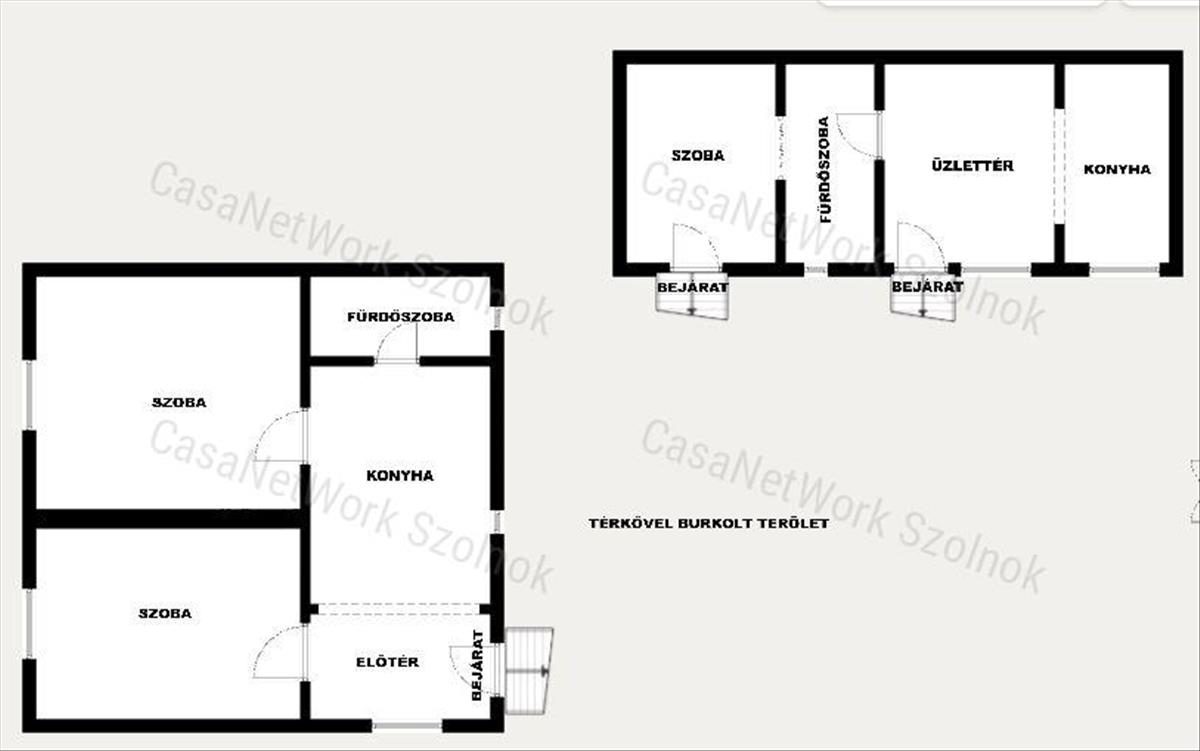 - előtér, konyha, fürdőszoba + wc, két nagy szoba