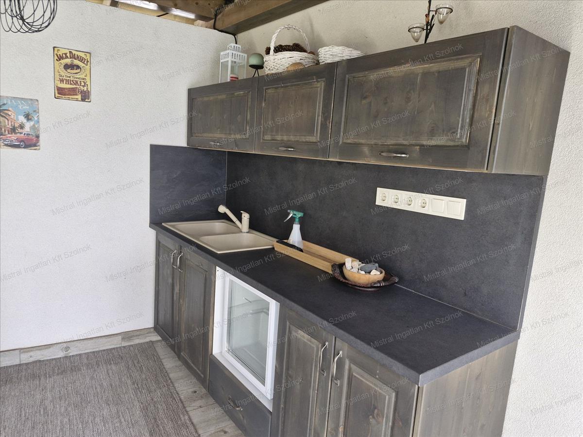 - fedett terasz beépített konyhabútorral vezetékes vízzel