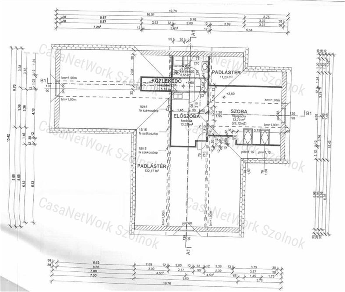 alapterület: 175 m² (földszint 137 m² + tetőtér 38 m²)