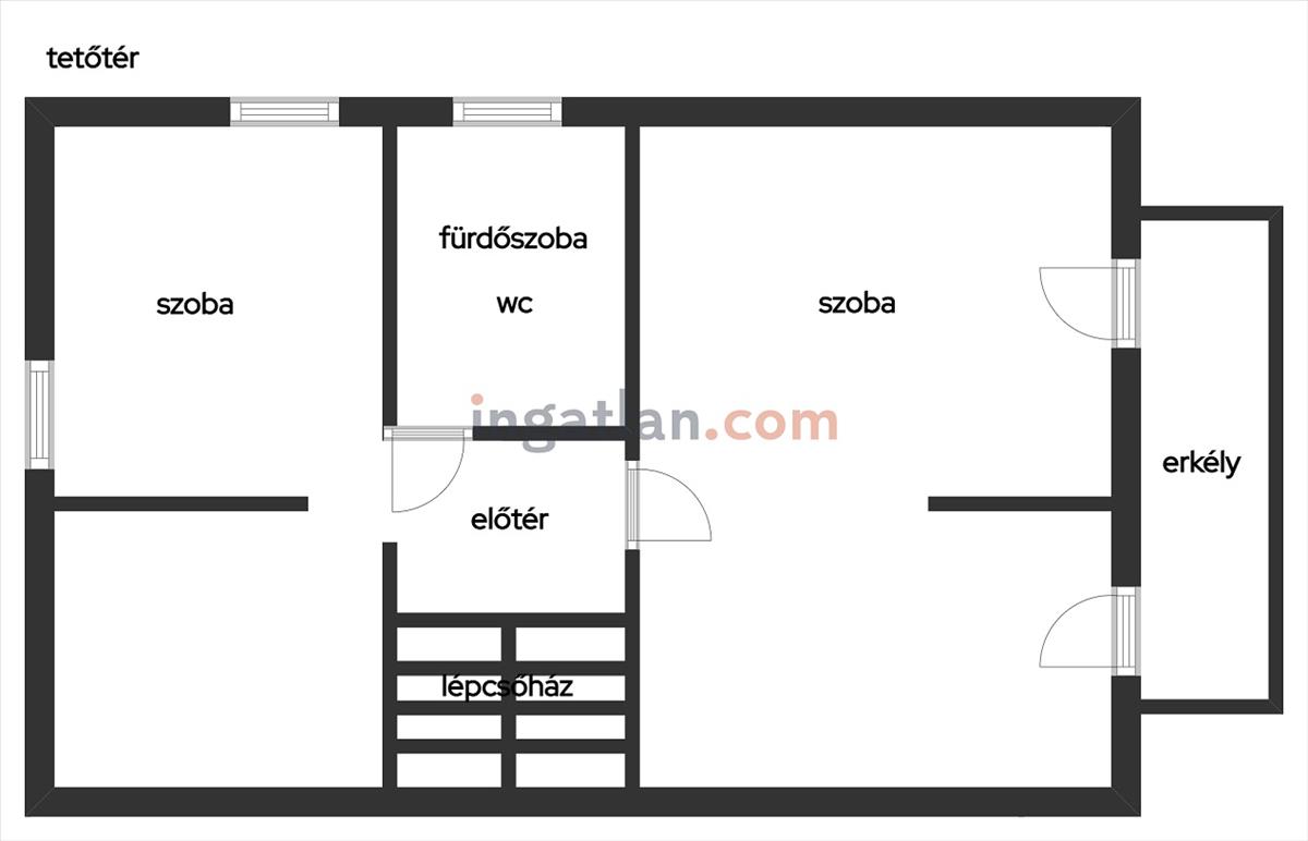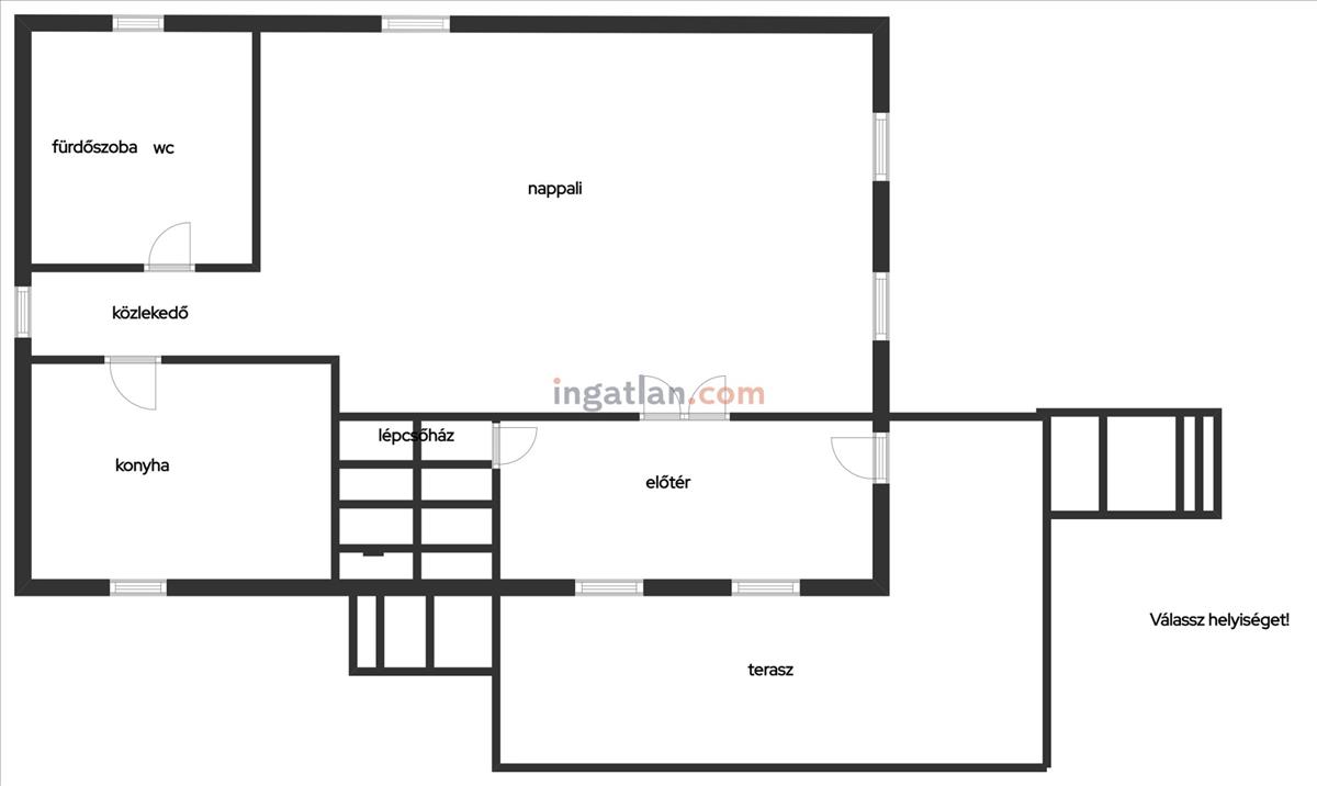Nyílászárók: Fa ablakok és bejárati ajtó.