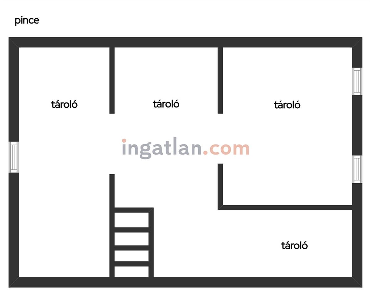 Pince (43 m2): Betonfödémes, 4 külön helyiségből álló, amely kiválóan alkalmas műhelynek, tárolónak vagy hobbiszobának.