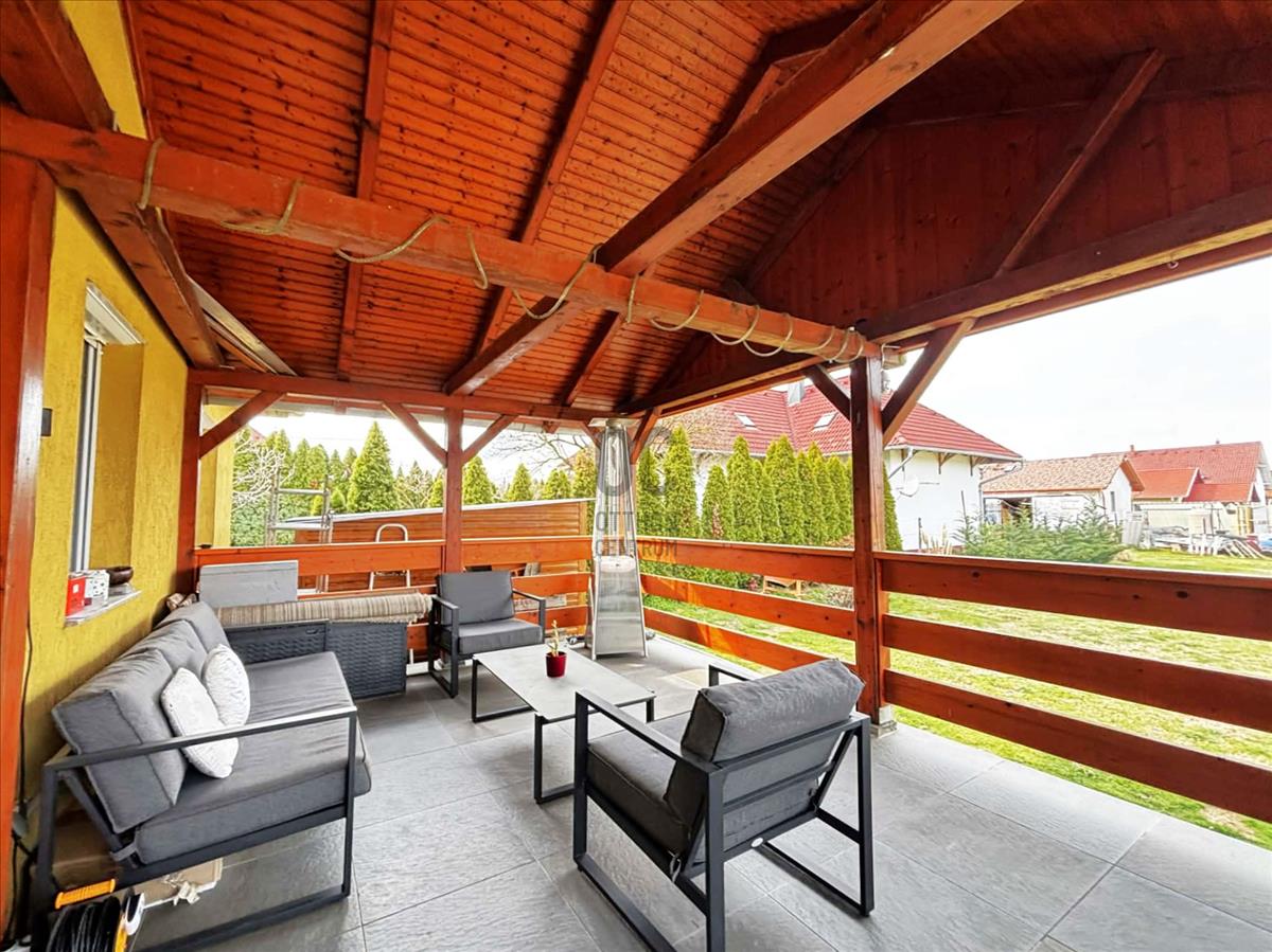 A ház 2 db fedett teraszkapcsolattal rendelkezik, a baráti összejövetelek, kerti bográcsozás, sütögetés remek színhelye lehet.