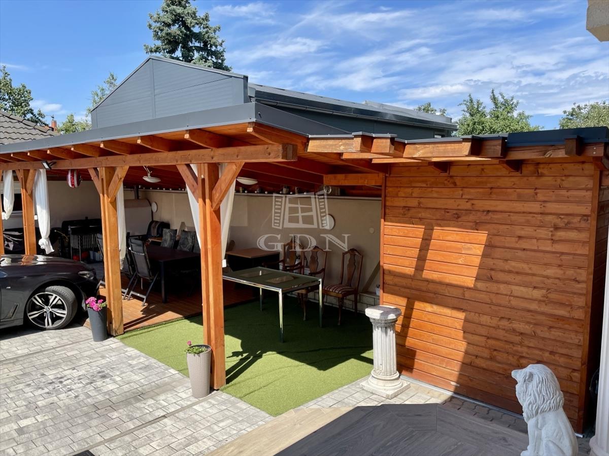- a konyhából lehet kijutni a nagyobb (12 m2-es) teraszra, amin át megközelíthető az udvar hátsó része: a plusz gépkocsibeállók, a garázs a kisebb épülettel, illetve a nagyméretű, minden igényt kielégítő nyári konyha.
