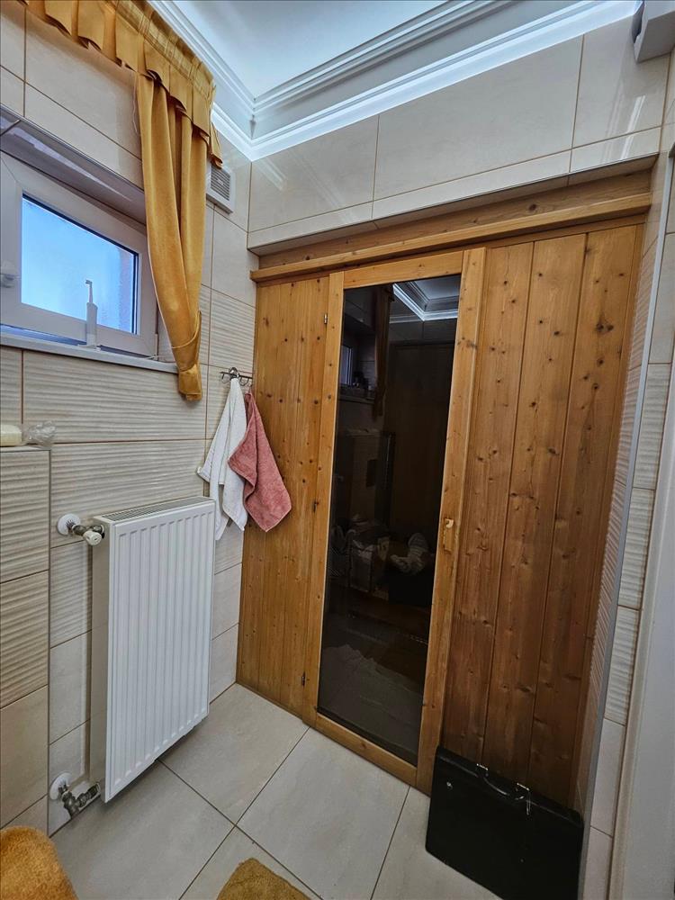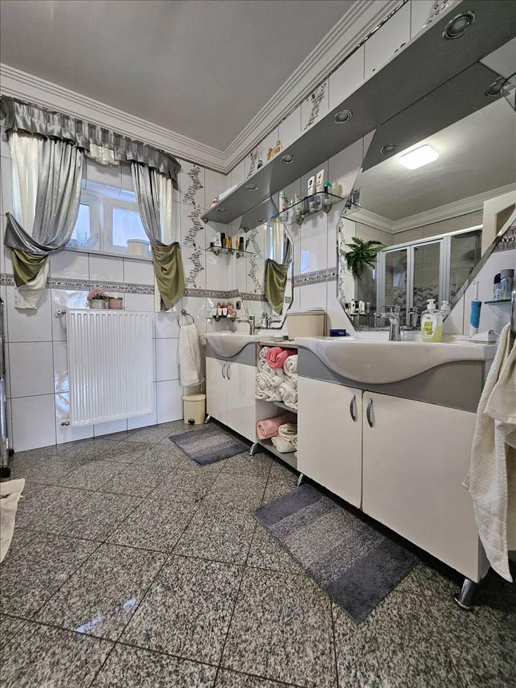 - a nettó 163 nm-es lakótér az alábbi elosztással rendelkezik: előtér, konyha, étkező, nappali, 2 hálószoba (16 nm – esek) fürdő-tusolóval és szaunával, háztartási helyiség, vendég-wc, fürdő kádas megoldással