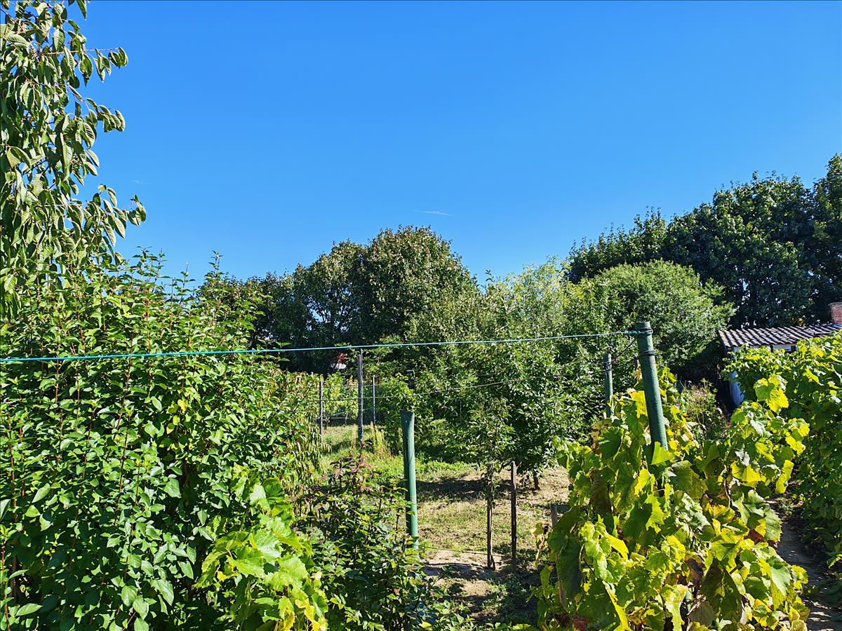 Számos gyümölcsfa és szőlő biztosítja a kert hangulatát és a saját termést.