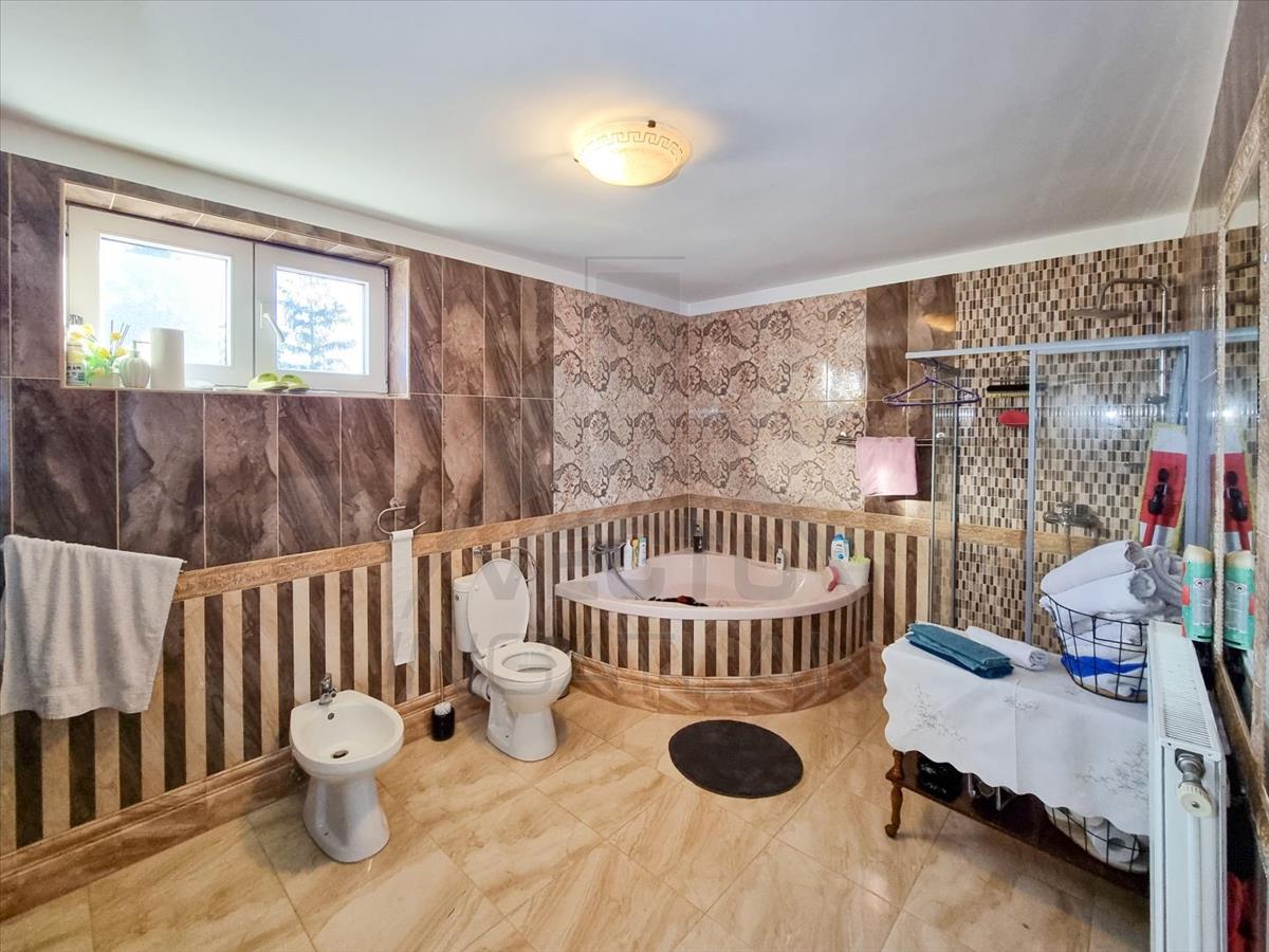 Villa jellegű családi ház, medencével! Szombathely kedvelt városrészén az Alsóhegyi utcáról nyíló, rendezett kis forgalomú zsákutcában kertvárosi, nyugodt környezetben, panorámás családi ház eladó, a ház szépen parkosított nagyméretűnek számító 1. 400m2-es telken áll, amin egy uszodarész is található. Az épület pince +földszint + tetőtér kialakítású, az alábbi helyiségelosztással: Pince (97m2) : 2 tároló + parti helyiség+ kazánhelyiség + gépház. Földszint (227m2) : előtér + étkező + konyha + kamra + közlekedő + 2 szoba + Fürdő/Wc + 3 nappali + uszoda (61m2). Tetőtér (140m2): 2 galéria + közlekedő + 4 szoba + fürdő/wc. Az épület 1997-ben épült modern phoroterm falazattal és bitumen zsindely héjalással. a nyílászárok hőszigeteltek és redőnnyel felszereltek. a fűtésről és a melegvízről gázkazán gondoskodik radiátoros hőleadással. Hogy kényelmes legyen a bejárás, a kinti kapu elektromos távirányítóval nyitható. Az udvaron 4 beállásos fedett gépjármű parkoló lett kialakítva, a hátsó részen az uszodahelyiséggel kapcsolatos terasz és pihenőrész is rendelkezésre áll, valamint egy melléképület is található. a környék infrastruktúrája kiváló, közelben bevásárló központok sportpályák iskolák, szabadidő központ stb. Megtalálhatók. Szombathely belvárosa pár perc sétával elérhető. Az ingatlan ideális lehet családoknak, de nagy mérete miatt, akár vállalkozás célú felhasználás is szóba jöhet!