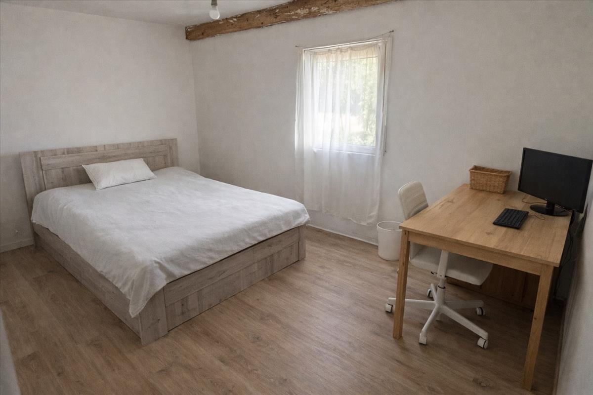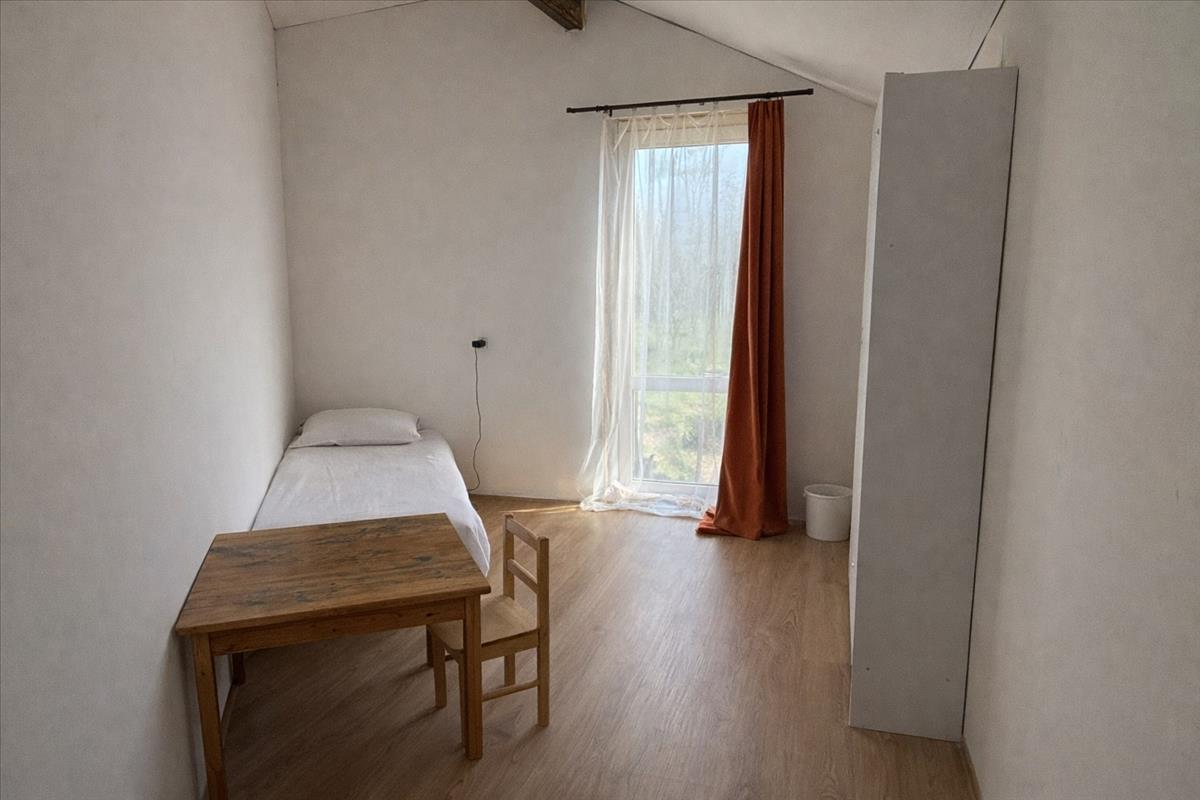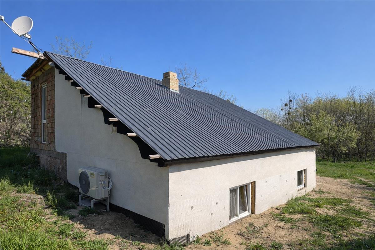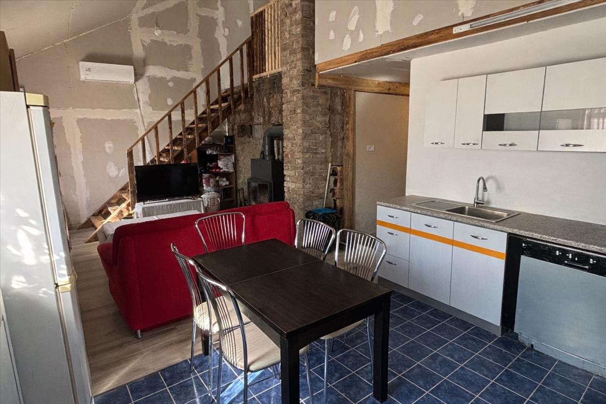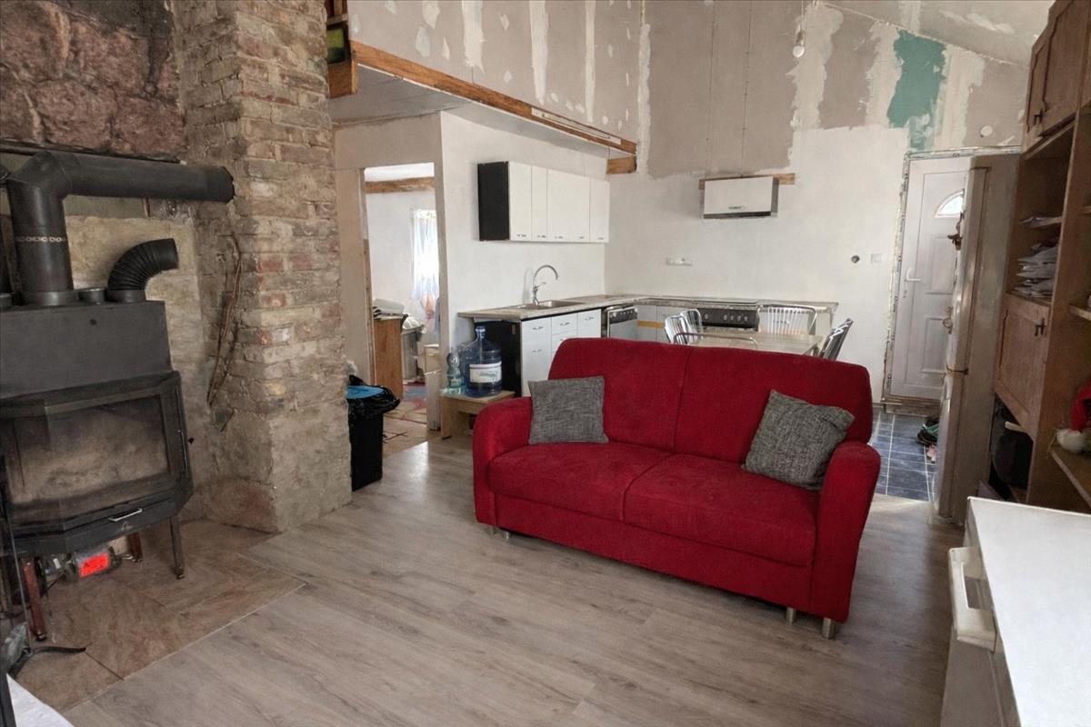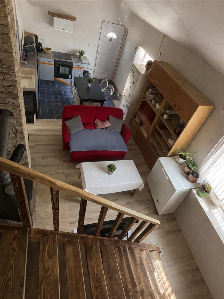 A ház alsó szintje 59 nm , ahol amerikai konyhás nappali, hálószoba és fürdőszoba található, a felső, kb. 30 Nm-es szinten pedig további 3 hálószoba került kialakításra. Az épület részben kő, nagyobb részt könnyűszerkezetes, műanyag nyílászárókkal.