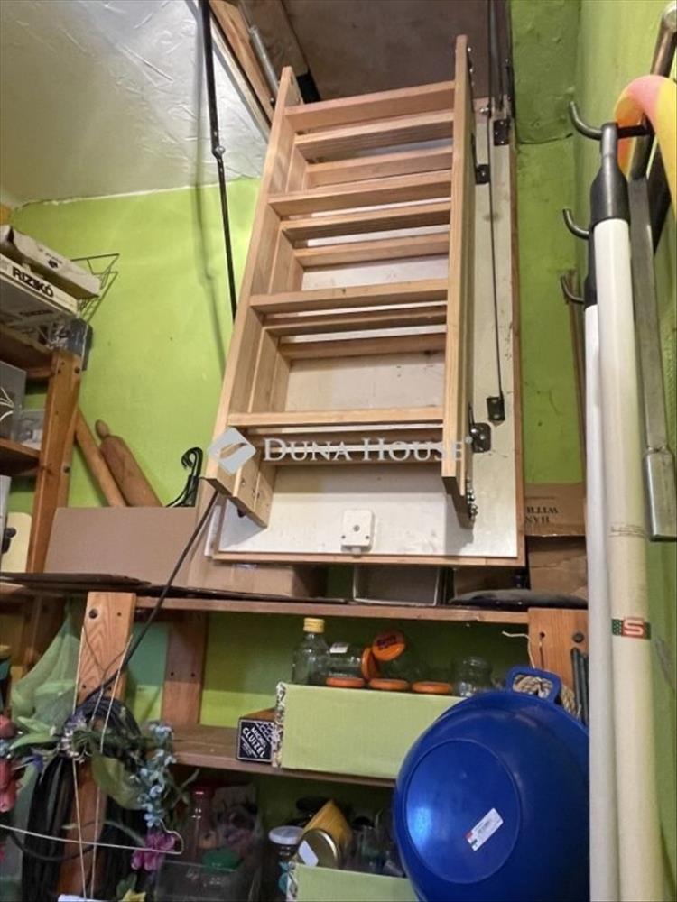 A konyhából egy kamrába jutunk, ahol a padlásra lehet feljutni.