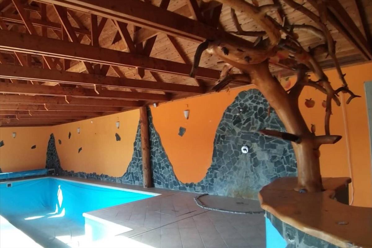 Helyiség elosztása: Földszinten található, nappali, konyha, étkező, 2 szoba, fürdőszoba, wc, közlekedő. a lakóházhoz kapcsolódó épületben került kialakításra egy medence tér, melynek a mennyezete gyönyörű fagerendás, nyáron az ajtók kinyitásával a kerttel egybefüggővé nyitható. emeleten, 2 szoba, nappali, fürdőszoba és wc. a riasztó rendszerrel ellátott lakóház részben felújítandó, fűtése gáz cirkóval megoldott.