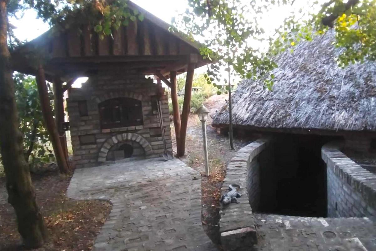 A parkosított telken található egy 60 m2-es, téglából épült, téglaaljzattal és fagerendás mennyezettel rendelkező, körben ablakokkal ellátott, fűthető, nádtetős pince, a pincében bográcsozó, grillező lett kialakítva.
