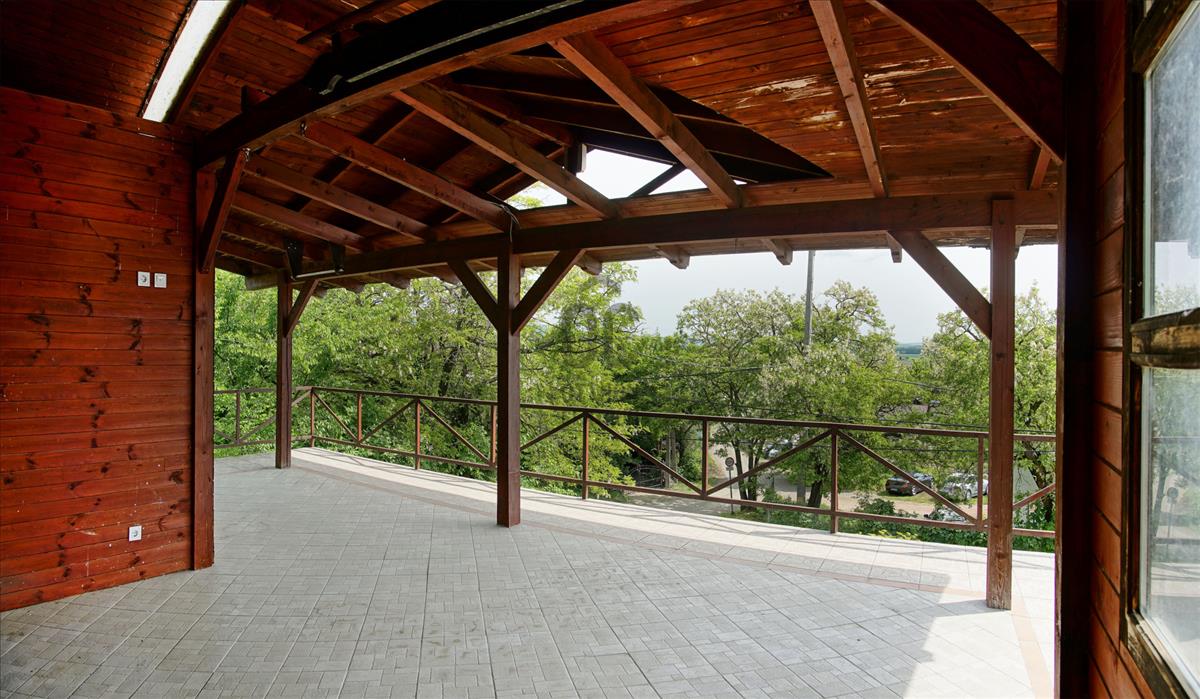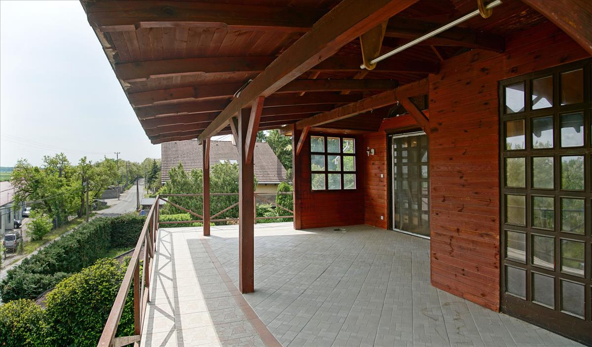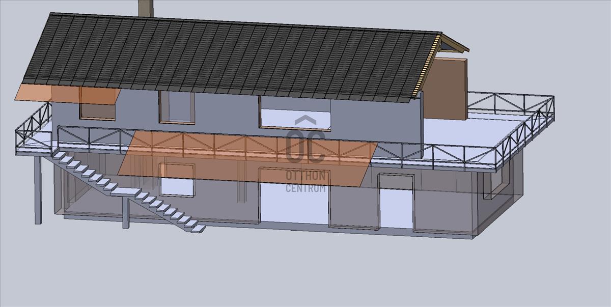Innen nyílik egy 23 nm-es pince, valamint a ház teljes hosszában végigfutó fedett terasz.