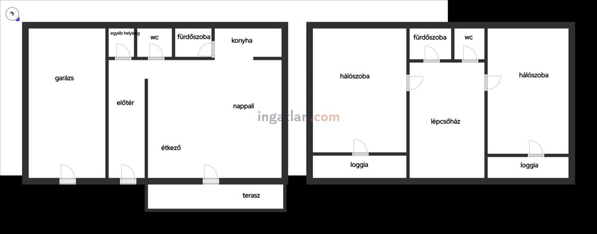 Az emeleten helyet kapott 2 nagy, napfényes szoba, egy kádas fürdőszoba, és egy wc. Mindkét szobához tartozik egy-egy 5 m2-es loggia, csodás Pilisre néző panorámával.