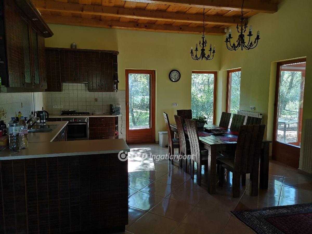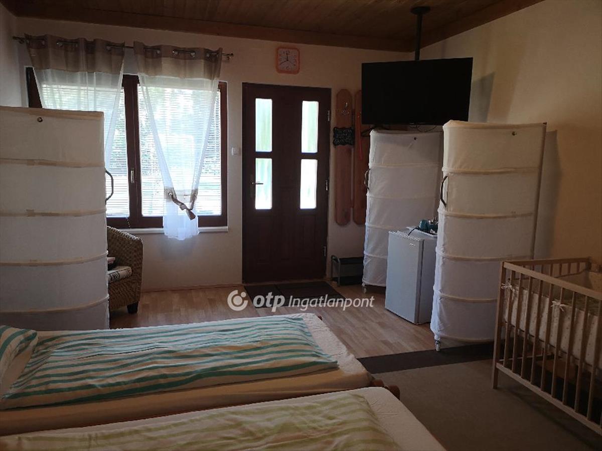 Vendégház (130m2), mely 3 db önálló bejárattal rendelkező vendégszoba saját zuhany/WC + 1 apartman: 1 szoba, galéria, fürdőszoba, konyha, wc. Vegyes tüzelésű kazánnal. Az apartman külön hűtő/fűtő klímával is rendelkezik. 14 Fő elszállásolása lehetséges a vendégházban. Vendég étkező /társalgó 35 m2. a birtokhoz istálló tartozik, melyben 4 db nagy box, nyeregkamra van széles folyosóval megközelíthető. Valamint szénatároló szín 100m2, hozzá tatozó műhely 50 m2.