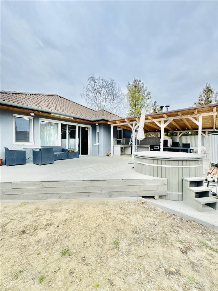 A kertben kialakított pihenőzóna és a dézsafürdő igazi kikapcsolódást biztosít, a tágas udvar pedig ideális családi programokhoz vagy akár további fejlesztésekhez.
