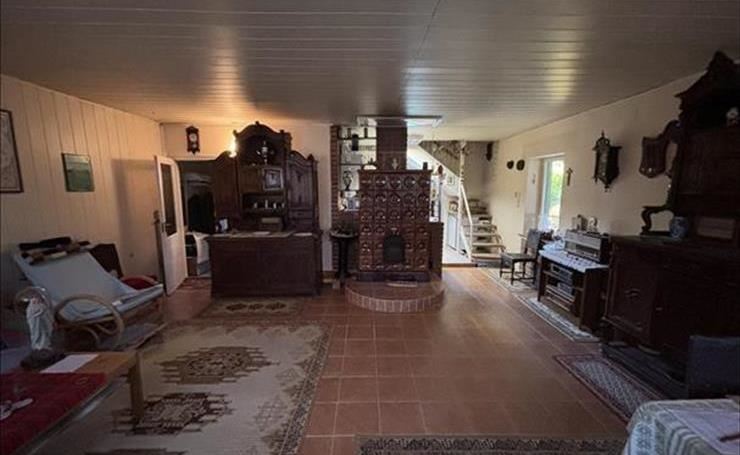 Az ingatlan földszinti részén találjuk a rendkívül tágas nappalit, az étkezőrésszel kialakított konyhát, a fürdőszobát és WC-t. a nappaliban egy jó állapotú cserépkályha is helyet kapott.