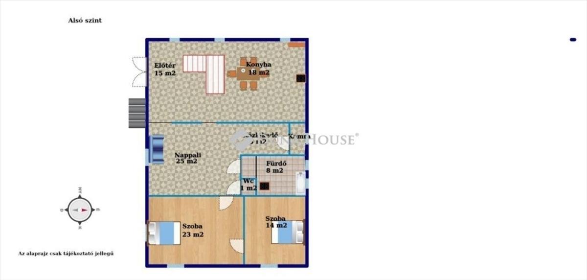 A földszinten kamra, fürdőszoba és külön illemhely van.